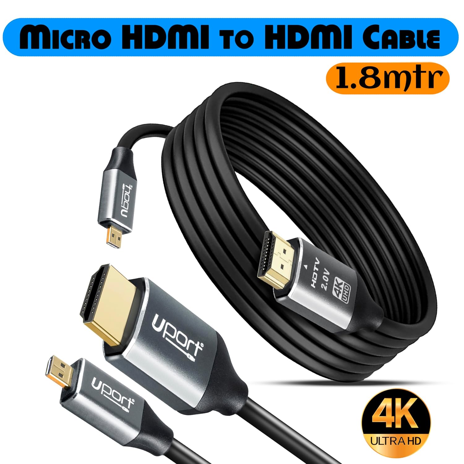 Storite 1.8 Meter Micro HDMI To HDMI 2.0V Cable With High Speed, 4K@60Hz, Compatible with Camera, Laptop, CCTV, Projector, Monitor (6 feet)