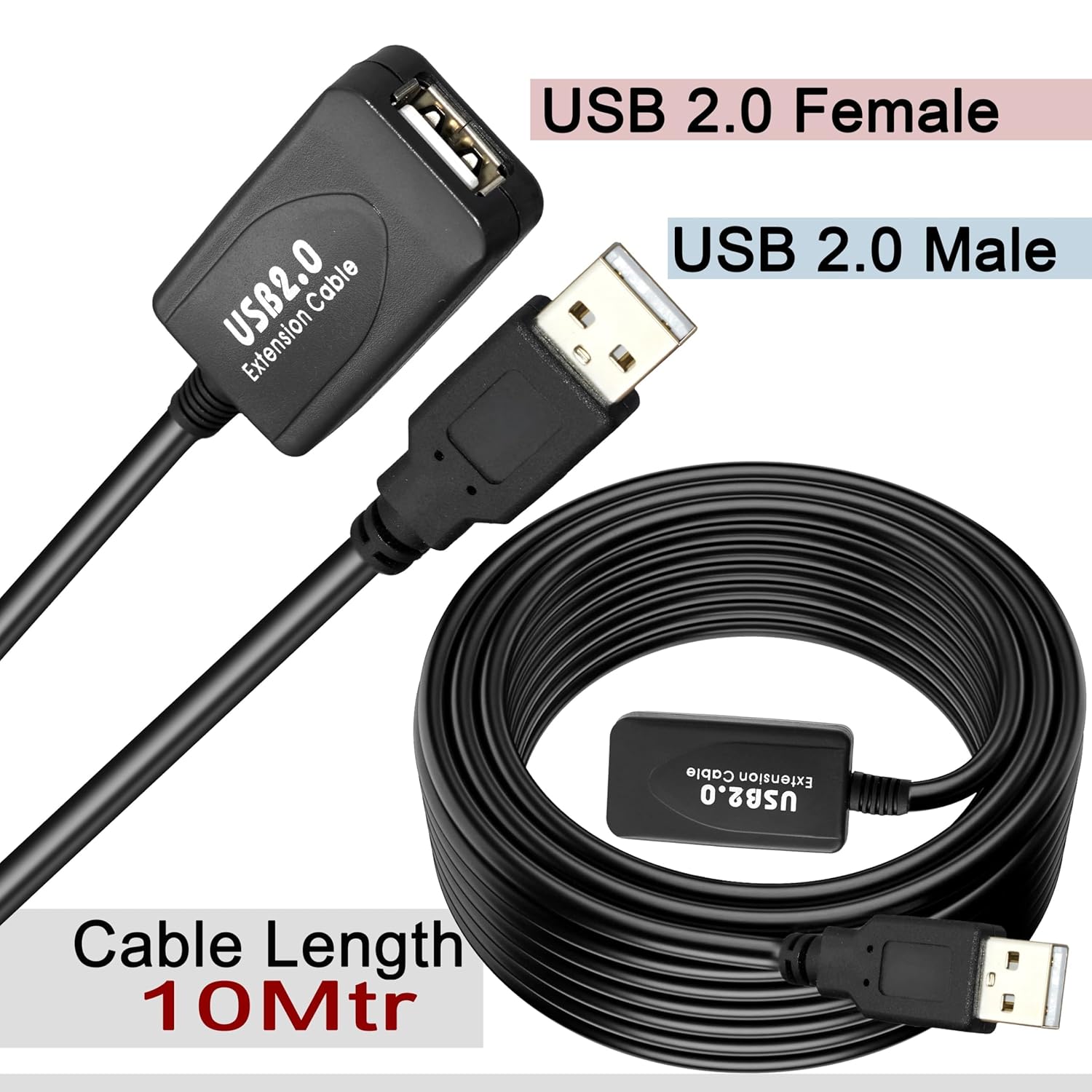 Storite 10 M Active USB 2.0 Male to Female Active Extension/Repeater Cable, Data Transfer Cord Compatible with Printer, Camera, Webcam - Black
