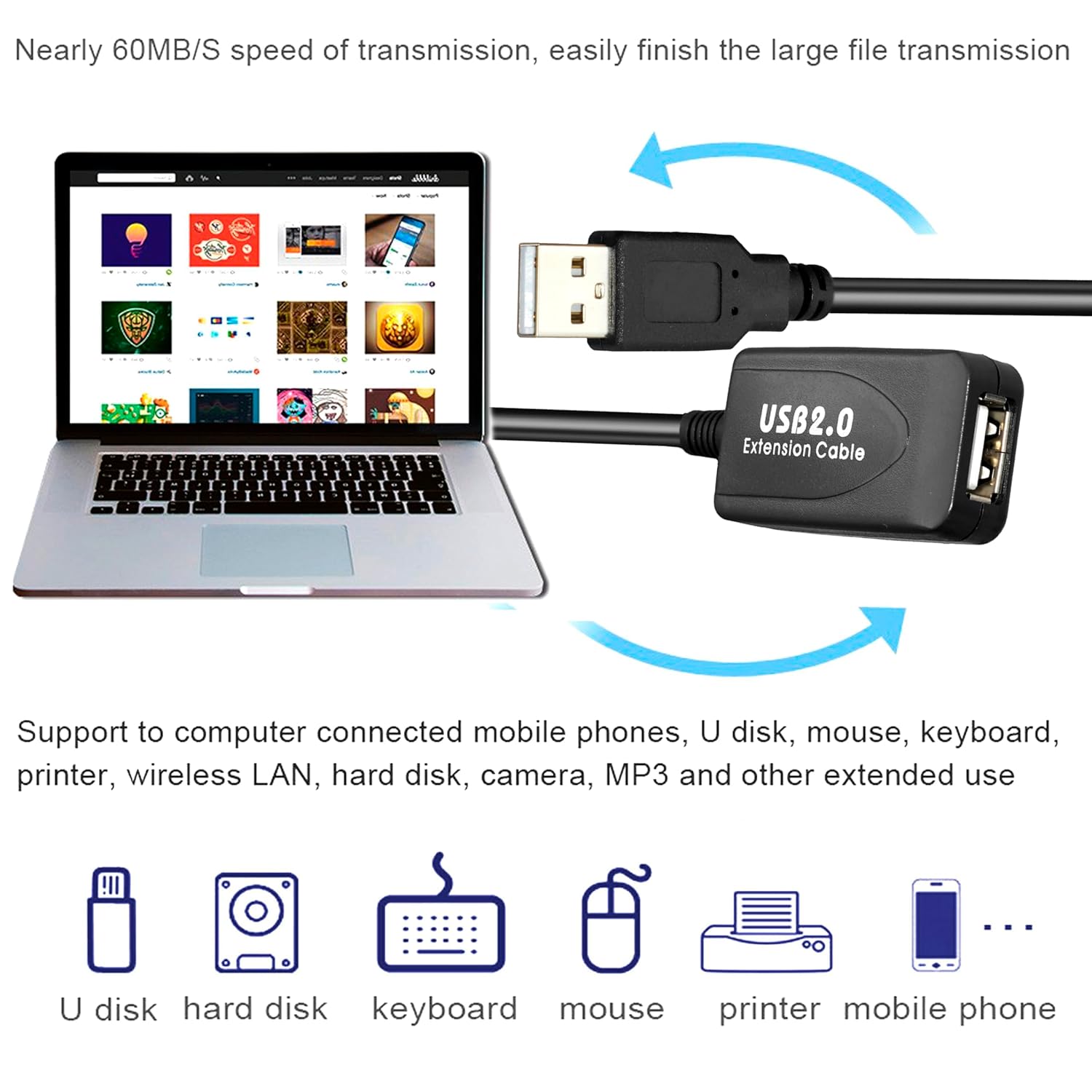 - An extension cable especially for use with your USB 2.0 devices.