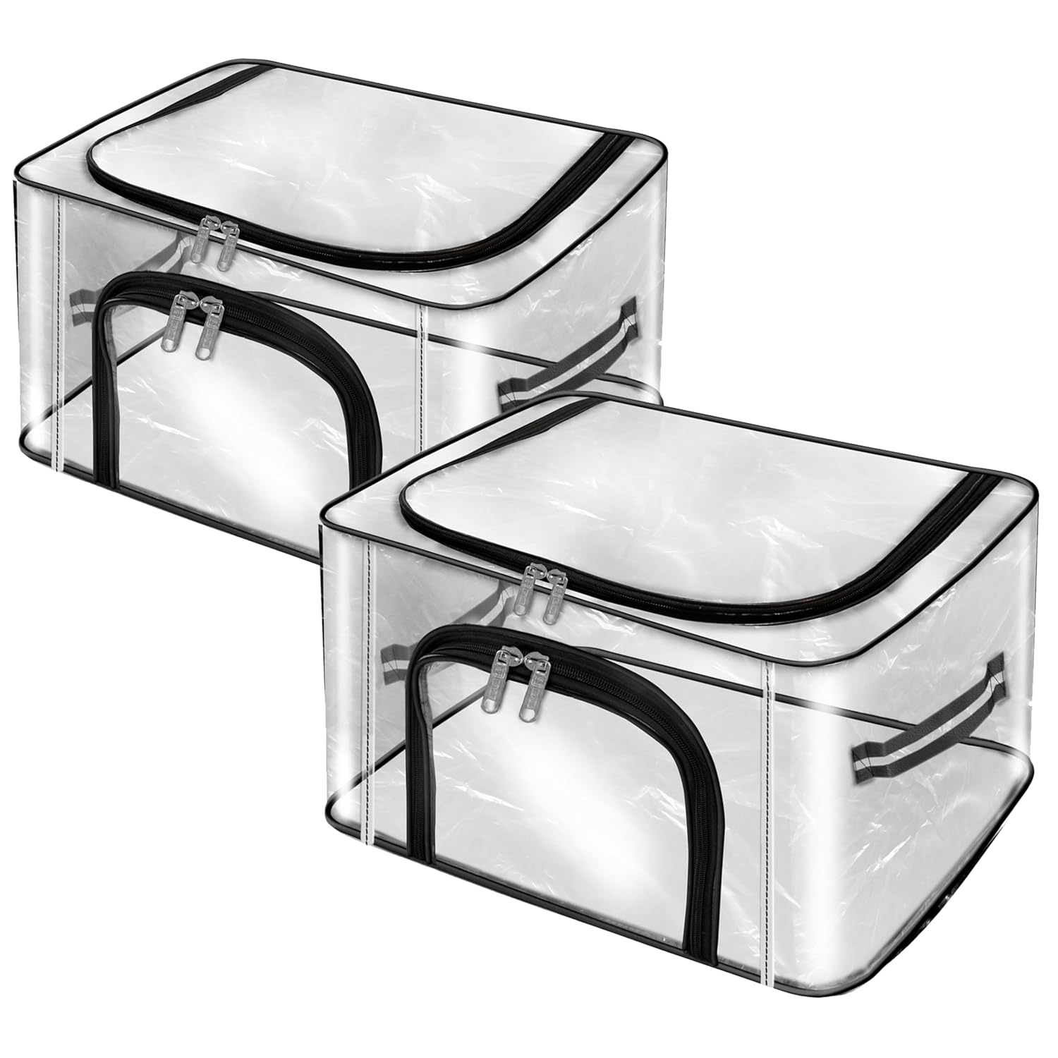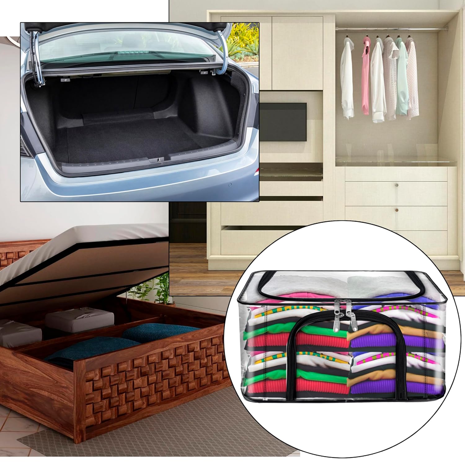 Storite 2 Pack 28 L Transparent PVC Wardrobe Bag Underbed Moisture Proof Cloth Storage Organizer, Storage box for Clothes Saree Bags with Zippered Closure & Handle (44 x 31 x 21 cm)
