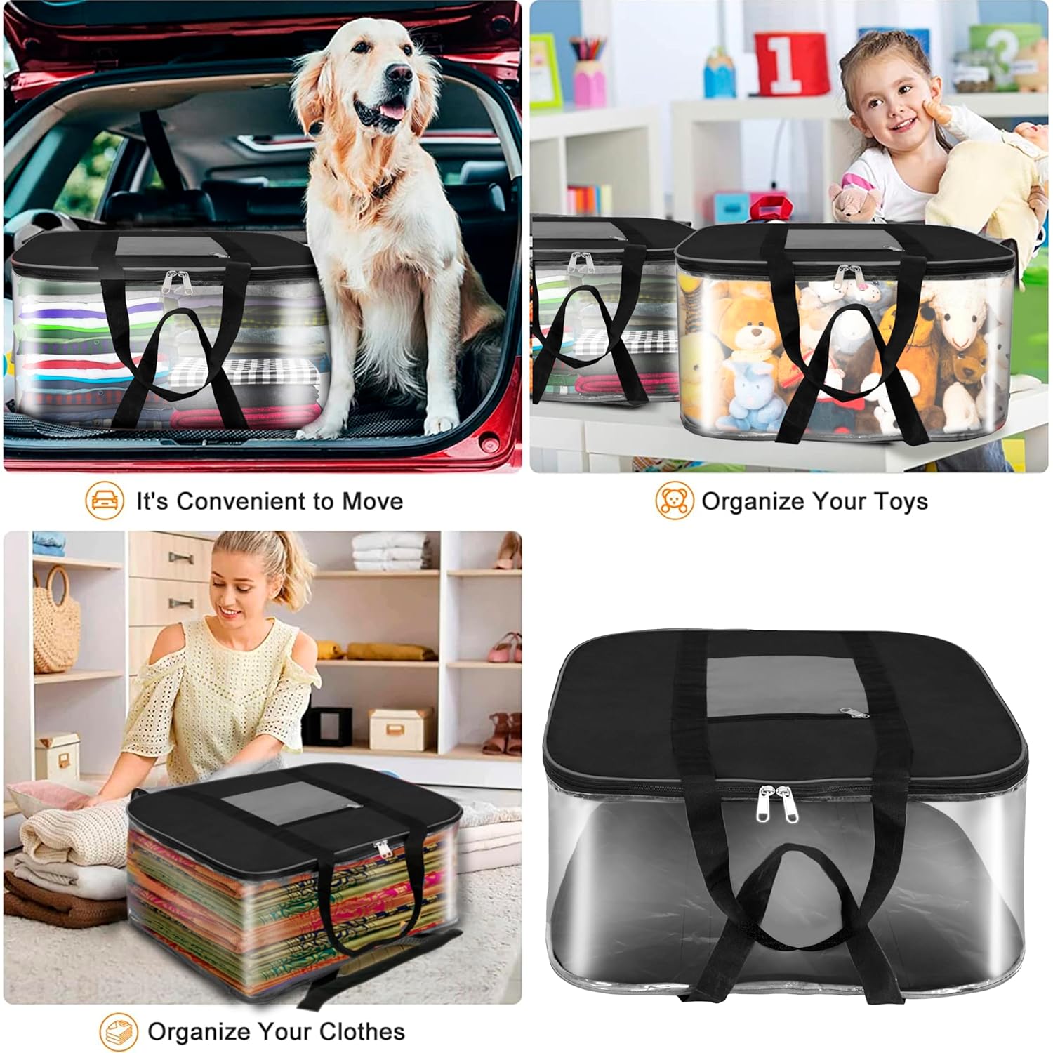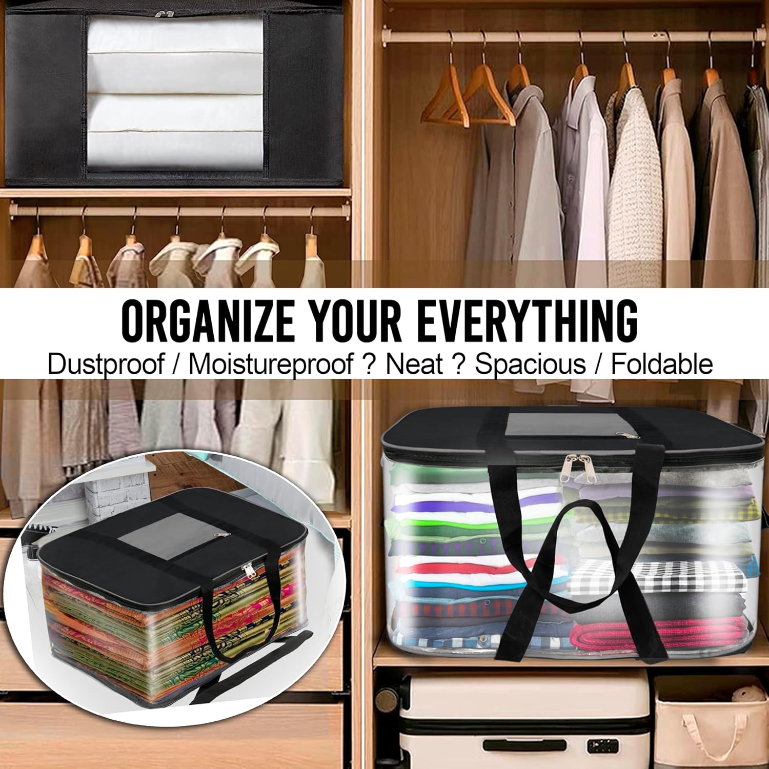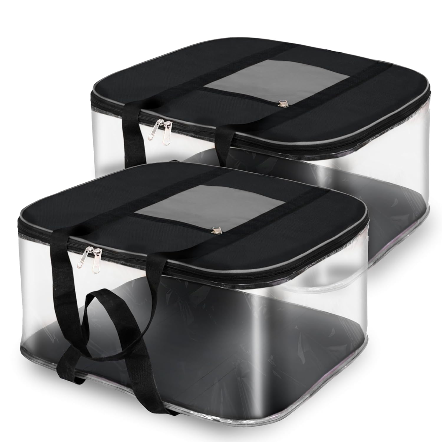 Storite 2 Pack Moisture Proof Big Nylon Transparent Underbed Storage Bag/Stationery Paper/Blankets/Clothes Storage Bag Rectangular (57x47x26 cm, GreyBlack)