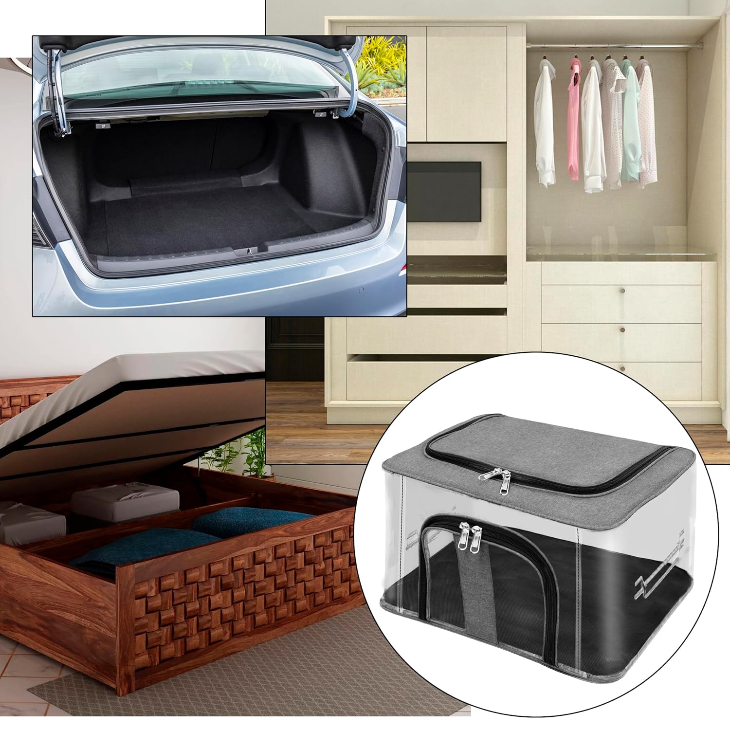 Storite 2 Pack Nylon 33 L PVC Transparent Moisture Proof Storage box for Clothes Closet Wardrobe Organizer for Clothes Saree Bags with Carry Handle - (Grey, 44 x 31 x 24 cm)