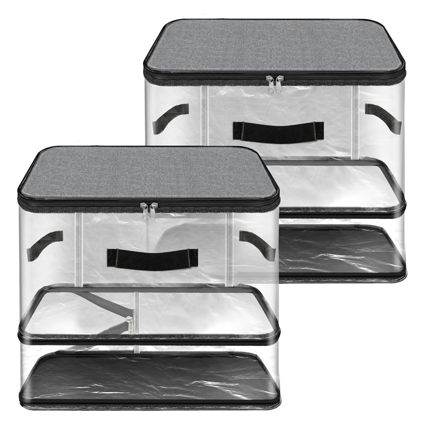 Storite 2 Pack Nylon PVC Transparent Expandable Organizer Storage box for Clothes Closet Wardrobe Space Saving Self Compression Organizer for Clothes Saree Bags with Carry Handle (Grey, 35x44x32 cm)