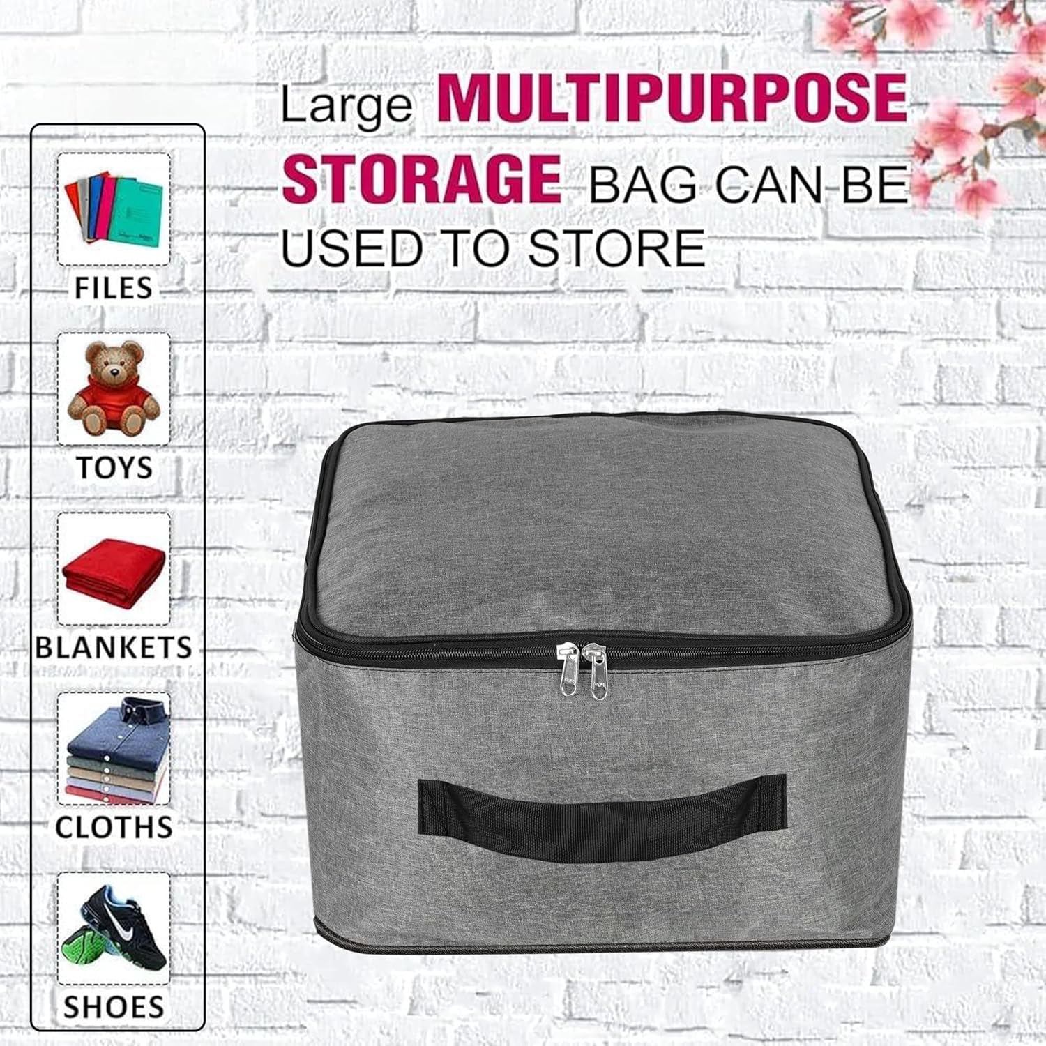 Storite 2 Pack Nylon Wardrobe Bag Underbed Moisture Proof Cloth Storage Organizer, Storage box for Clothes Saree Bags with Zippered Closure & Handle (Grey, 40x35x23 cm)