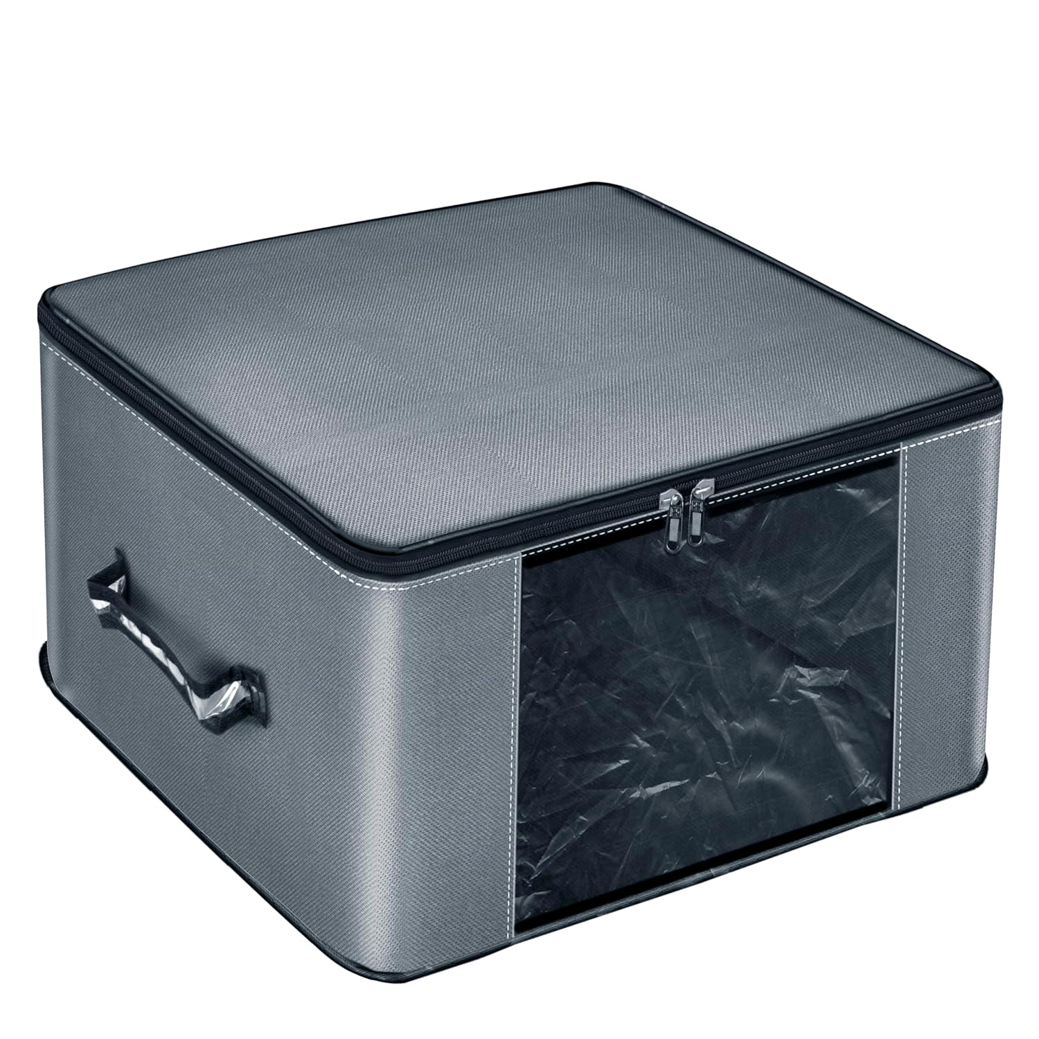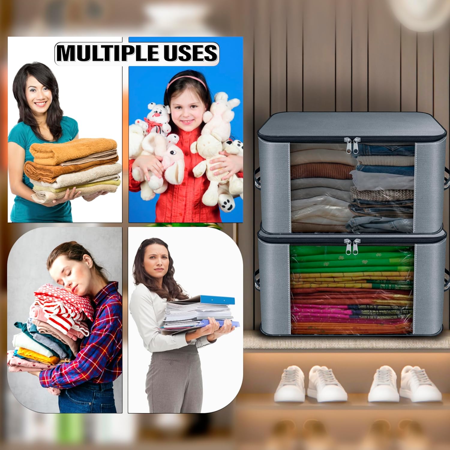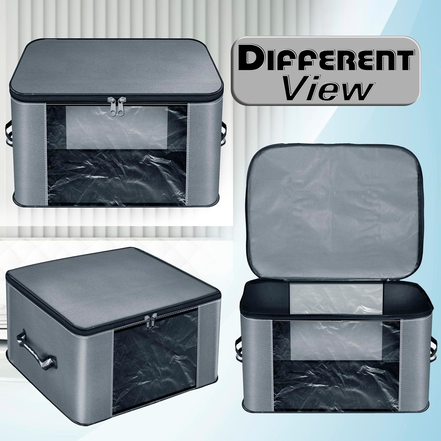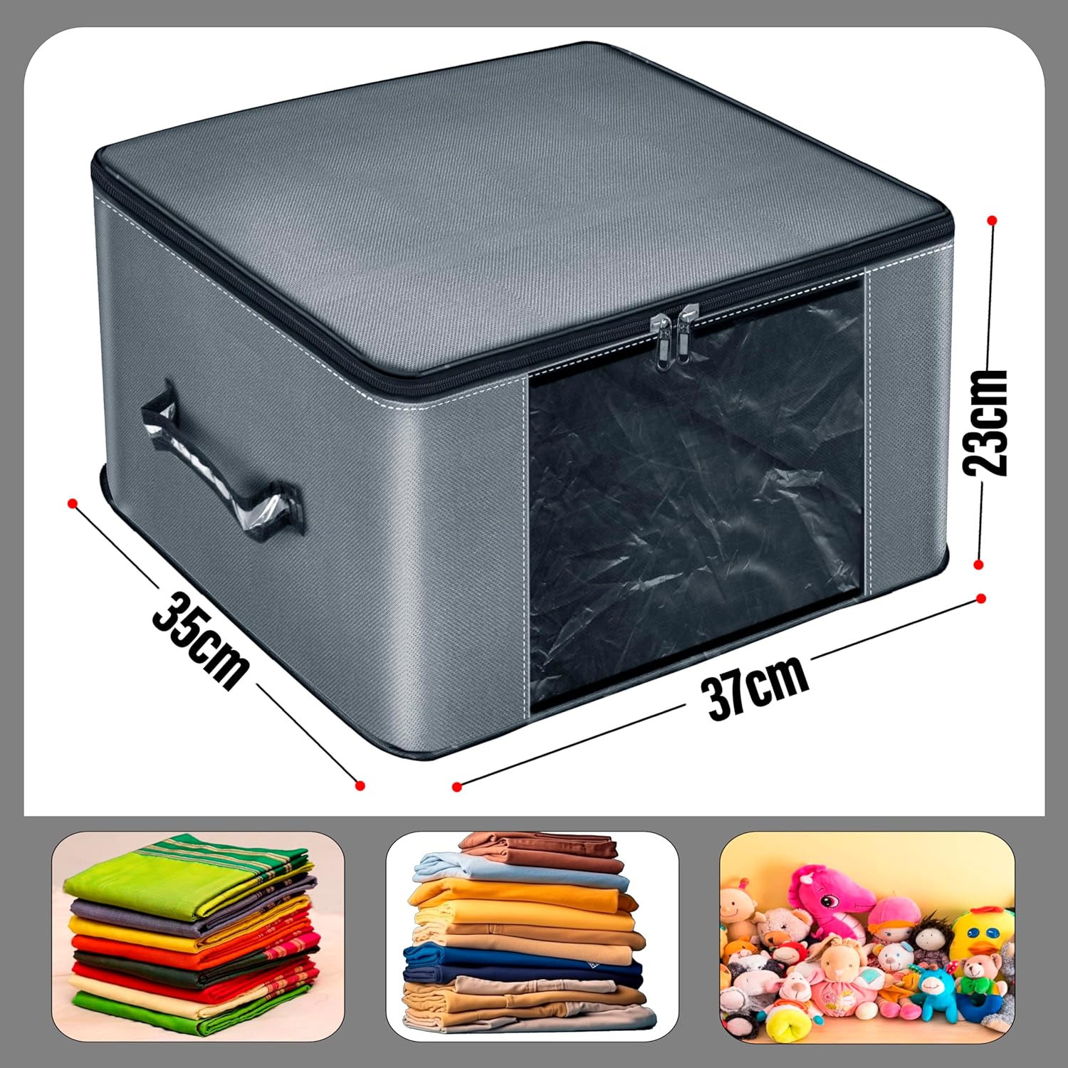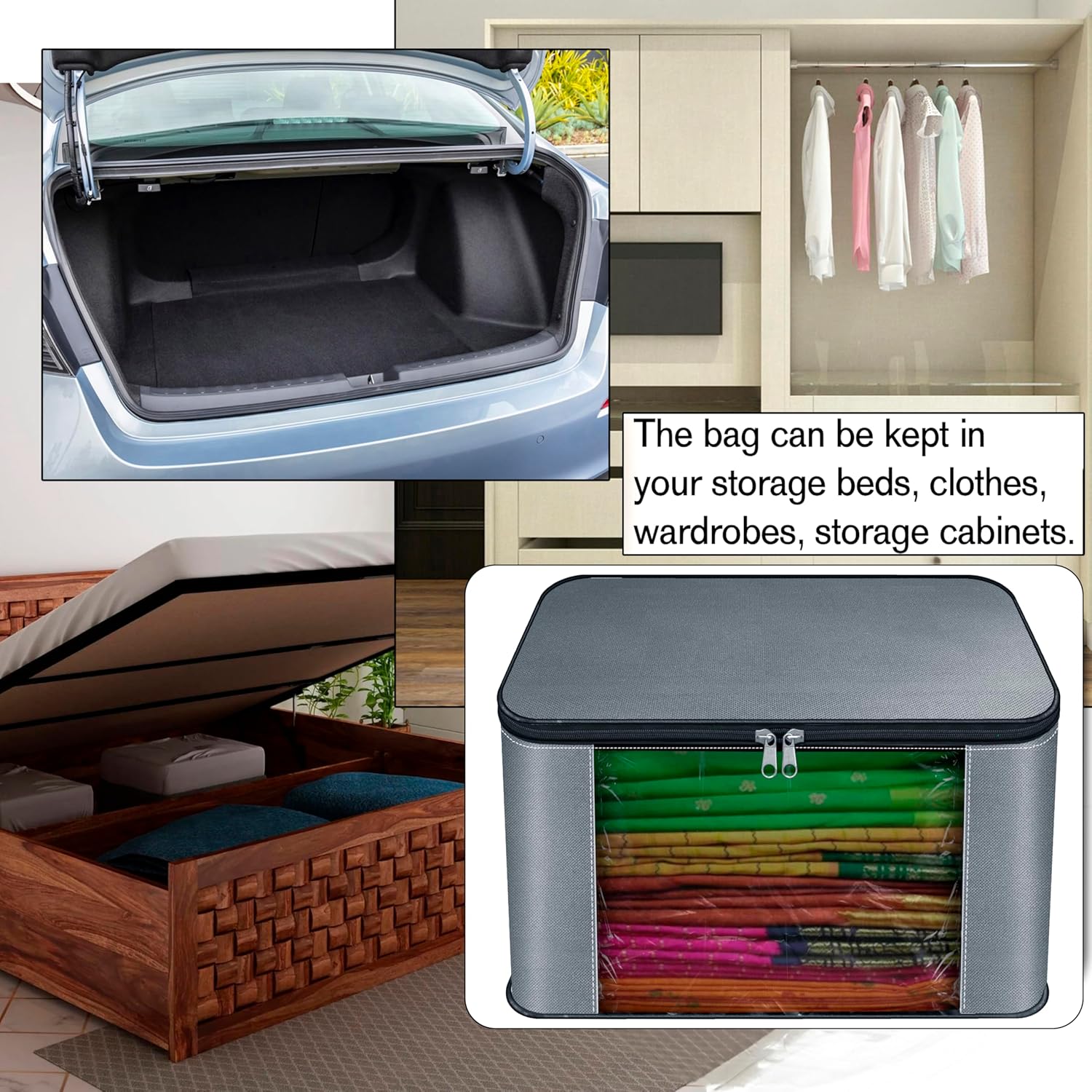 Storite 2 Pack Nylon Wardrobe Bag with Transparent Pocket Underbed Moisture Proof Storage Organizer, Storage box for Clothes Saree Bags with Zippered Closure & Handle (Grey, 37x35x23 cm) Square