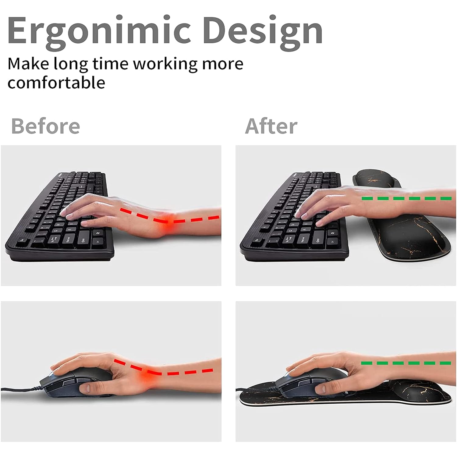 - Stress-Reliever: ergonomic mouse pad and rest keyboard pad will improve hand and wrist posture, it will avoid joint and wrist problems and release your elbows and shoulder stress for long hours of using computer