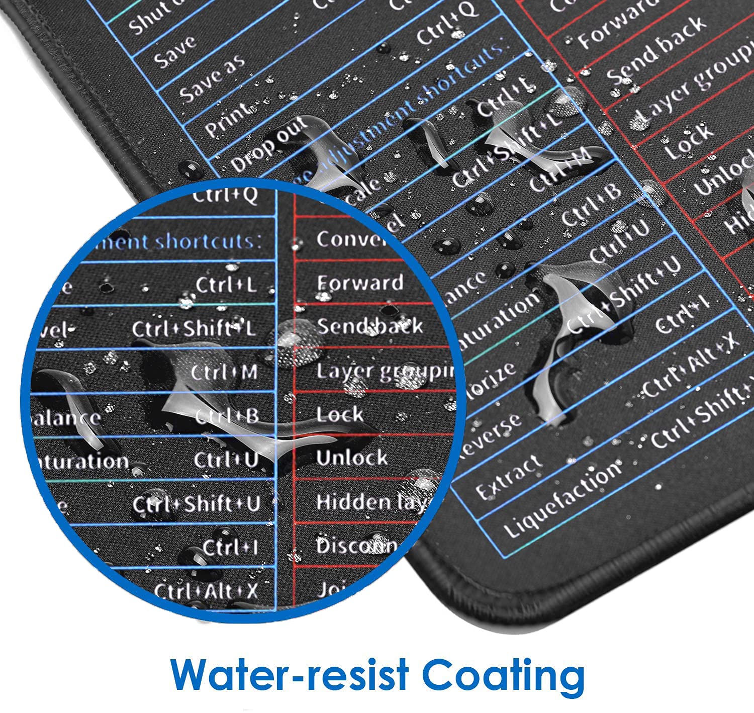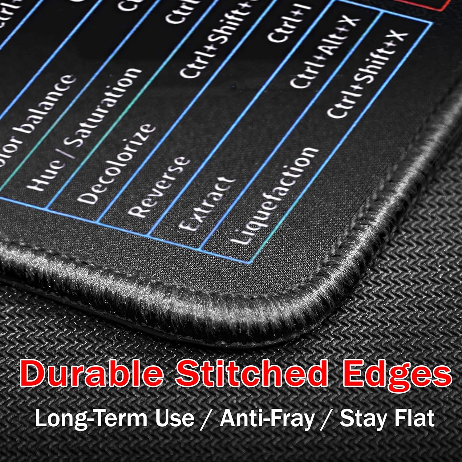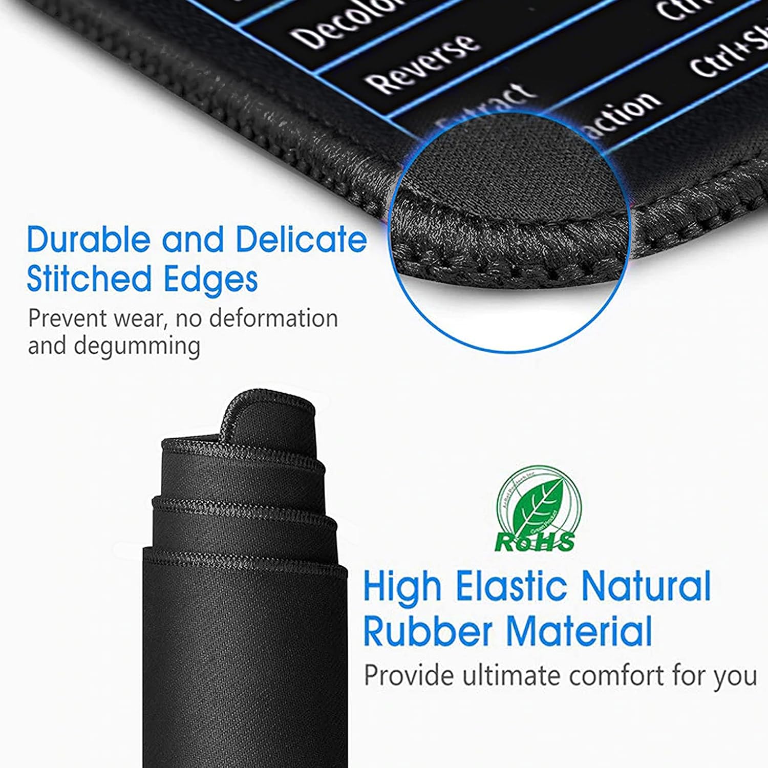 - DURABLE STITCHED EDGE: This mouse pad is DGT printed with shortcut, which is great tool to your work,can greatly improve work efficiency. The circle edge stitching prevents the top layer from fraying and ensures the mousepad for long time use.