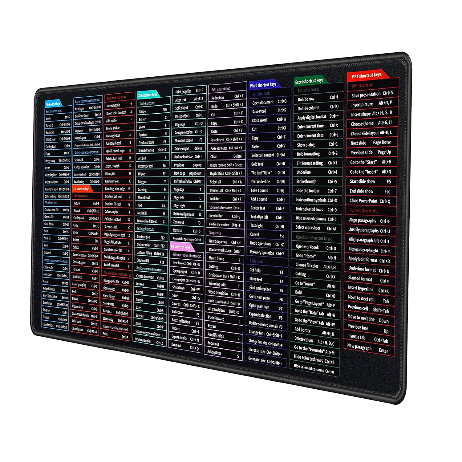 - Shortcut key mouse pad:The frontal patterns are all shortcuts about(word/excel/power point ), which can provide convenience for our daily work.The keyboard and mouse can be placed on the mouse pad to minimize friction with the table and protect your table.