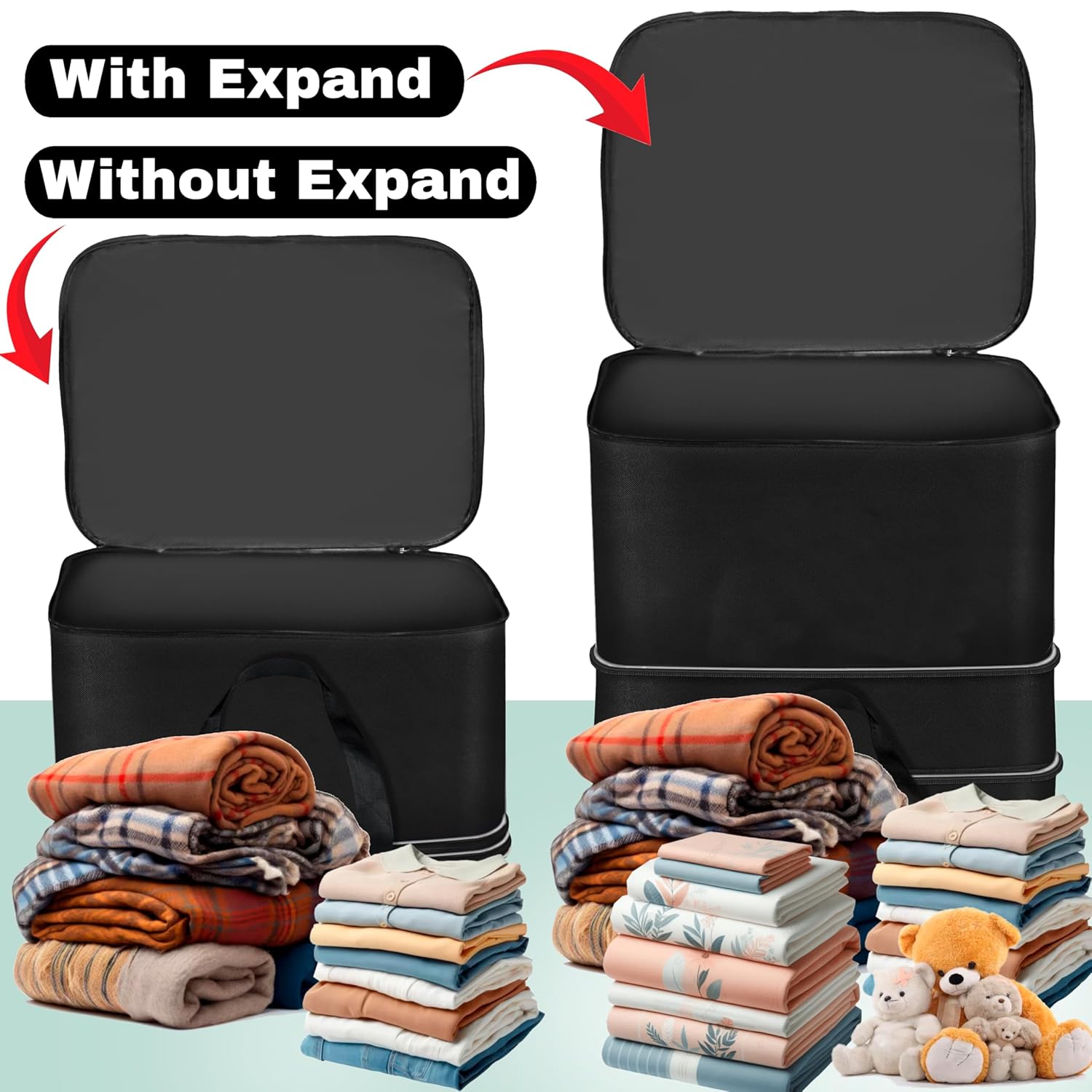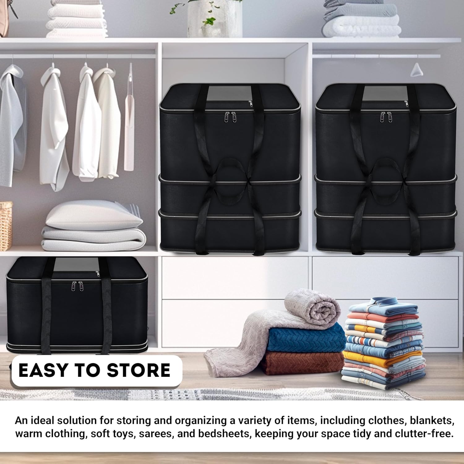 Storite 3 Layer Expandable Moisture Proof Nylon Large Size Underbed Storage Bag For Clothes (57 x 49 x 62 cm) - Grey Black,Rectangular