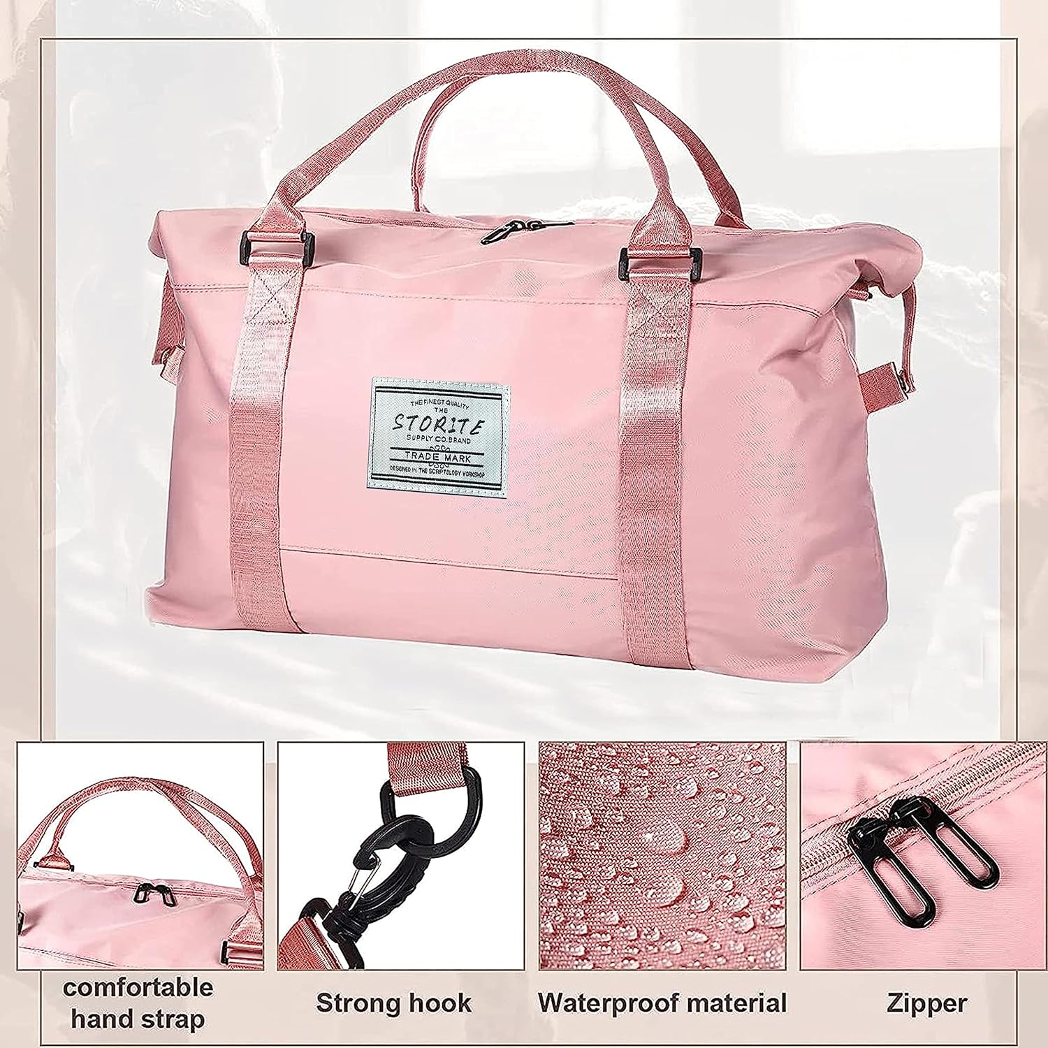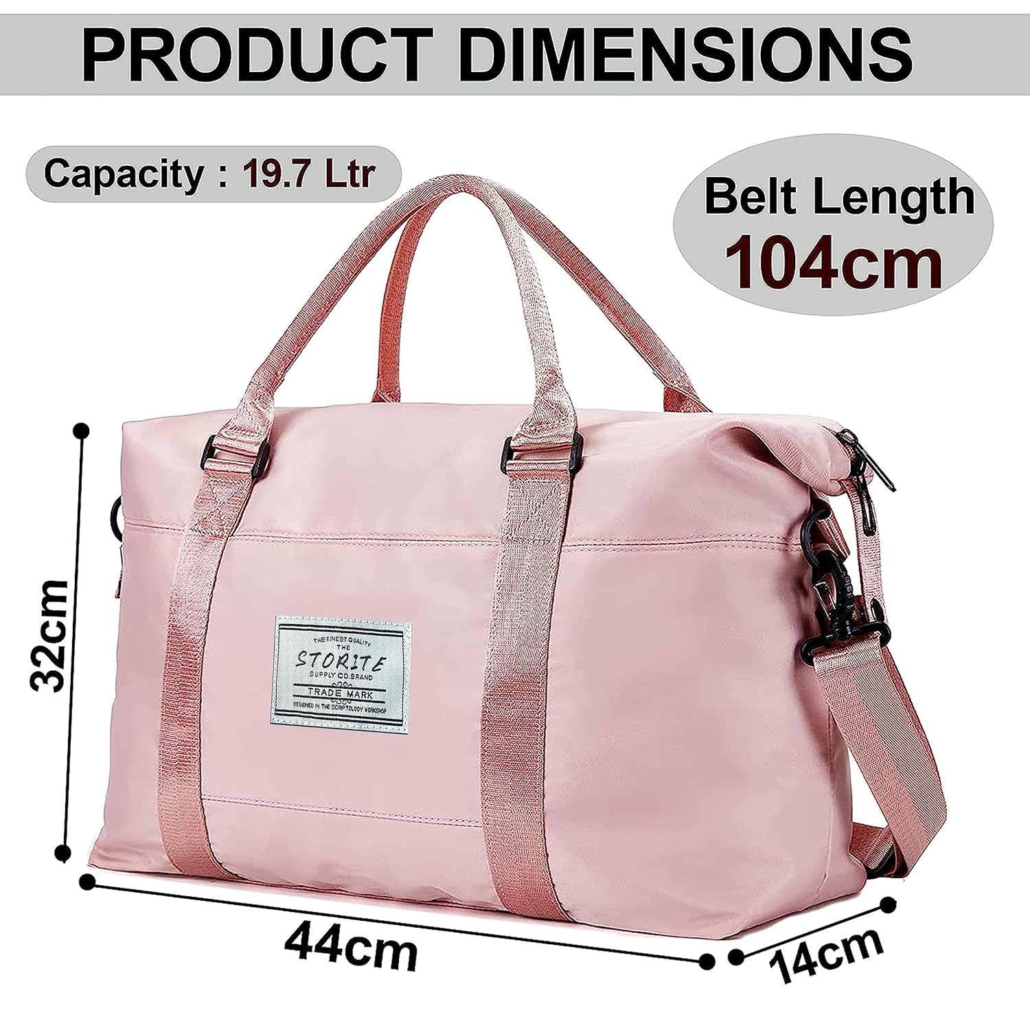 Storite 44cm Nylon Duffel Bag for Women - Waterproof Gym and Travel Tote with Wet Pocket - Pink