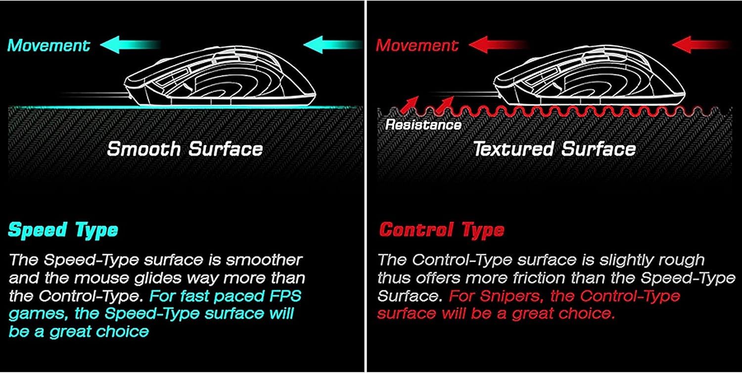- Ultra-smooth Cover: Our gaming mouse pad adopts high-quality on cover for smooth gliding. The Speed Type surface is smoother and mouse glides way more than Control-Type. For Fast paced FPS games, the Speed-Type surface will be a great choice. It is foldable so you can carry/move this everywhere or even in travelling.