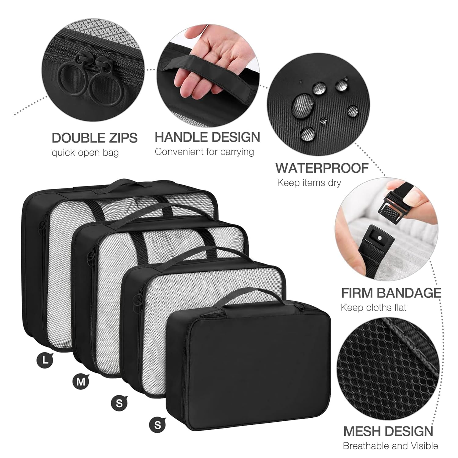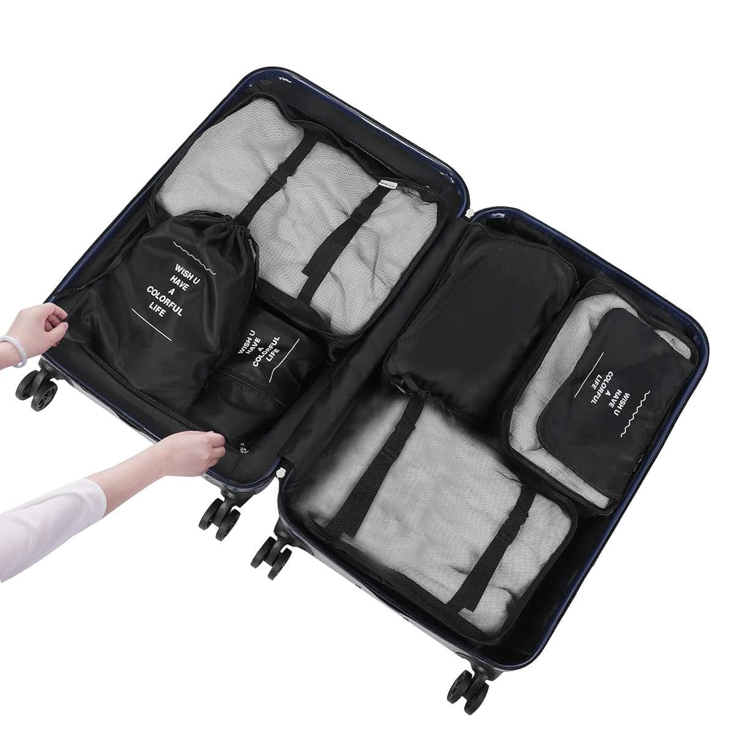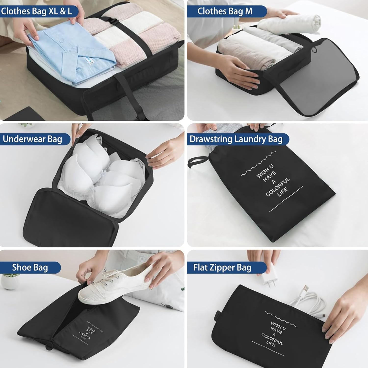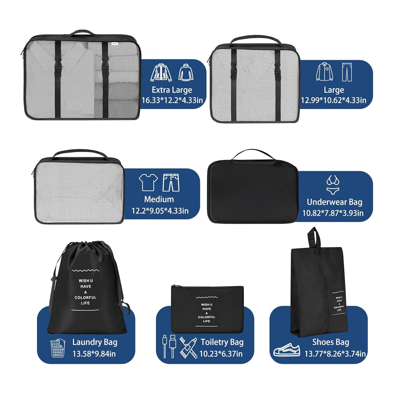 Storite 7pcs Travel Packing Cubes Set Lightweight Luggage Organizer Bags with Shoe Bag, Toiletry & Laundry Pouches - Black