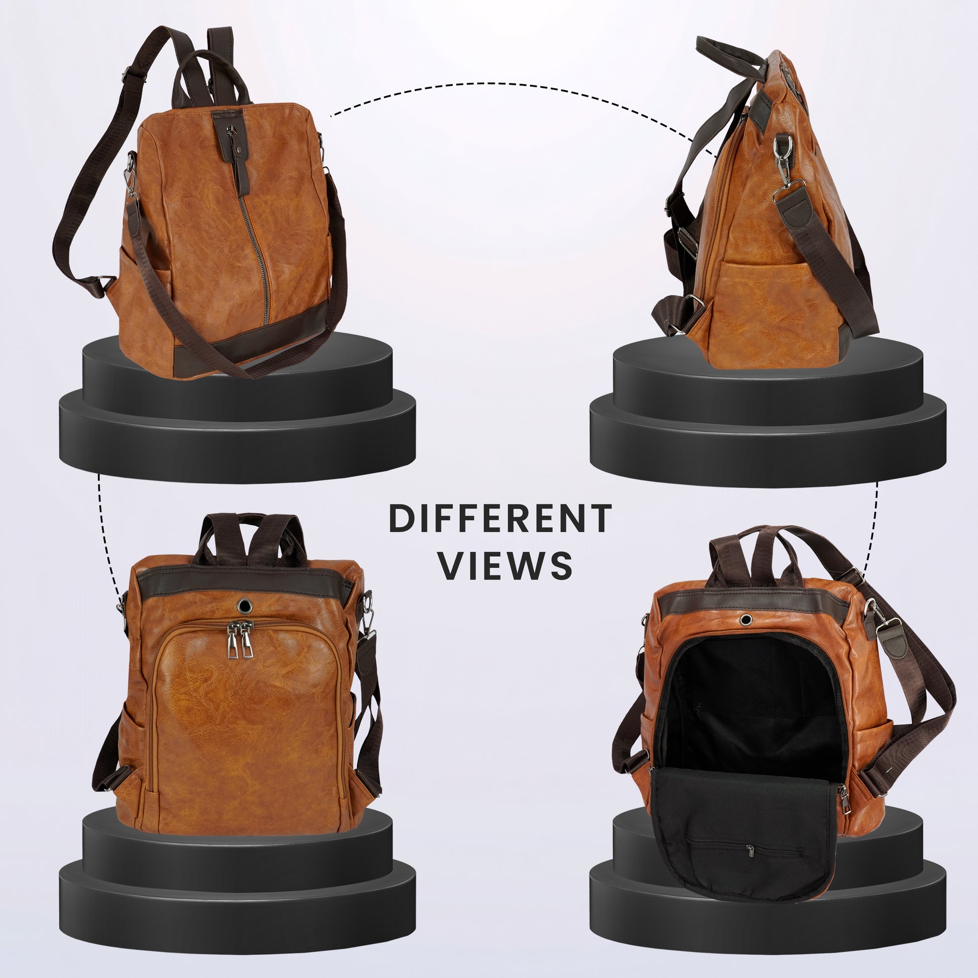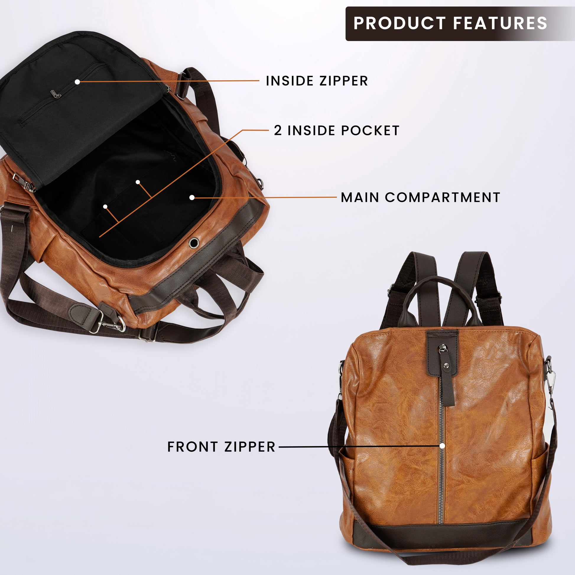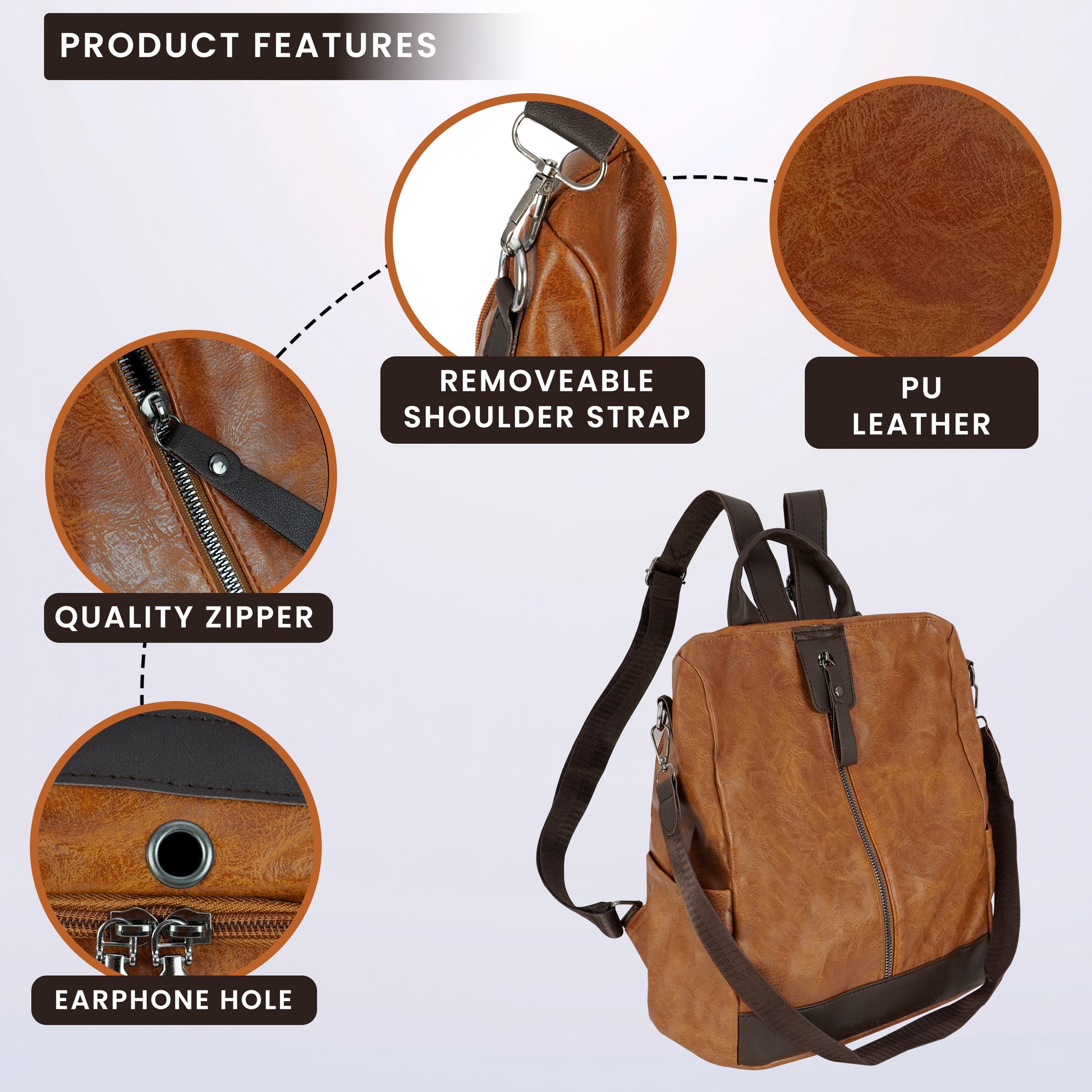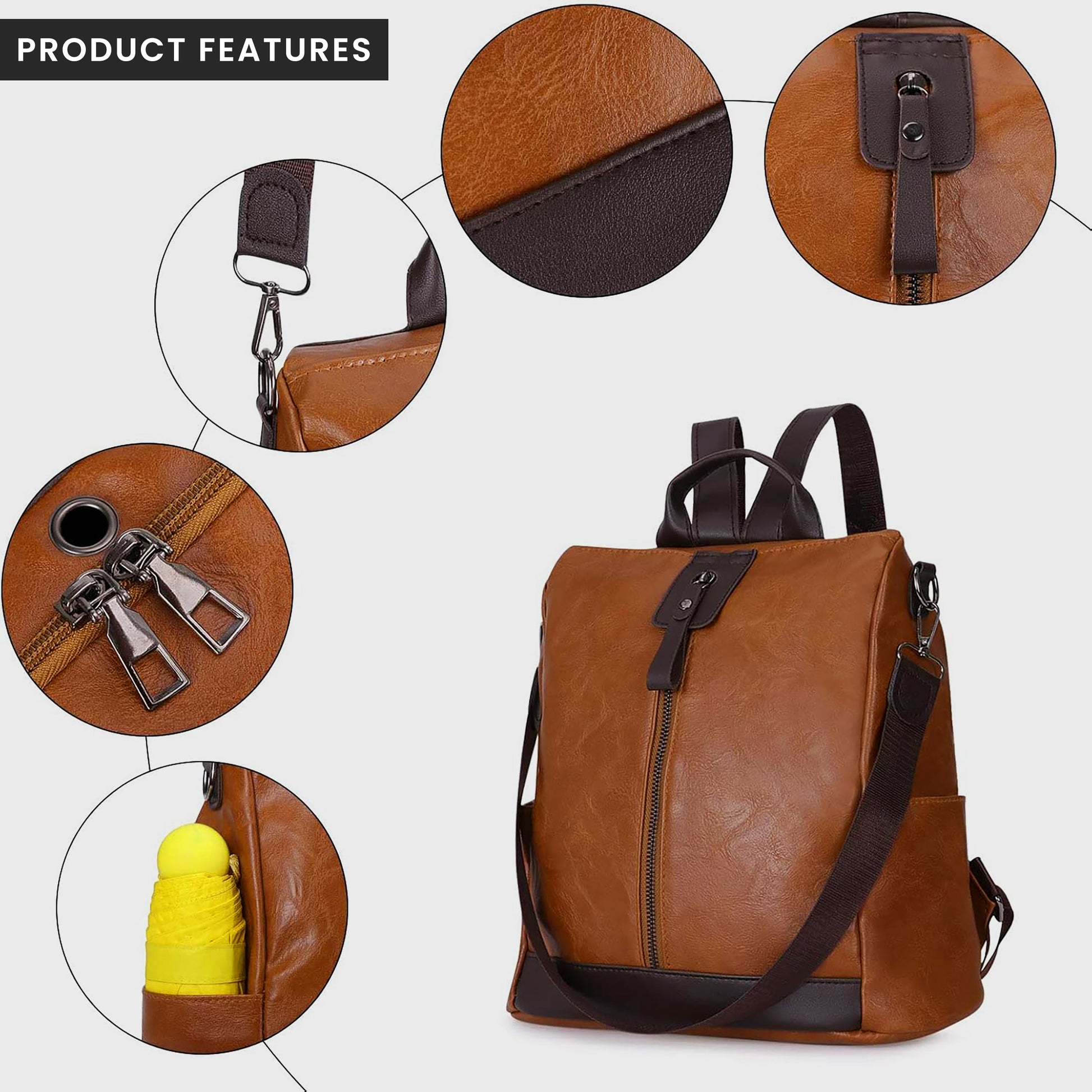 This vintage solid-pattern women's backpack combines timeless style and modern functionality. Made of high-grade PU leather, it is durable, water-resistant, and vegan-friendly. With a capacity of 8.5L and versatile compartments, it offers excellent organization for everyday use. Adjustable straps, a detachable sling option, and ergonomic design make it perfect for commuting, college, travel, or casual outings.