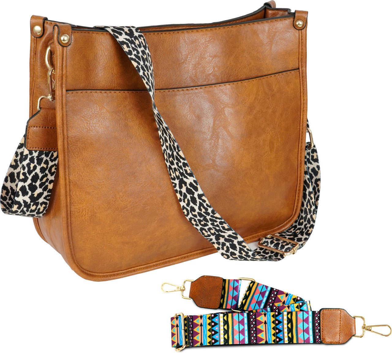Storite Brown Women Sling Bag PU Lather One Side Shoulder Bag with Two Printed Adjustable Strap