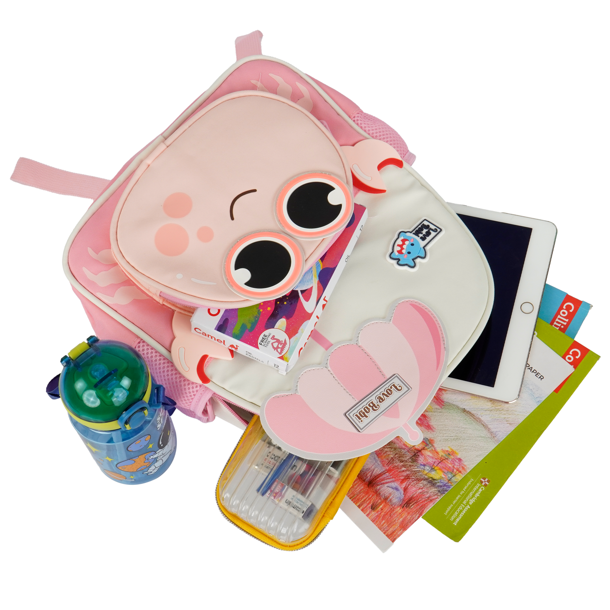 - Adorable Crab Design – Fun cartoon crab with big eyes and umbrella detail to make school time exciting for young children.