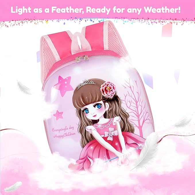 Features an adorable 3D printed princess in a pink dress, perfect for little girls who love fairytales and fantasy themes. Made with high-quality, water-resistant Oxford fabric for long-lasting use and protection from spills or light rain.