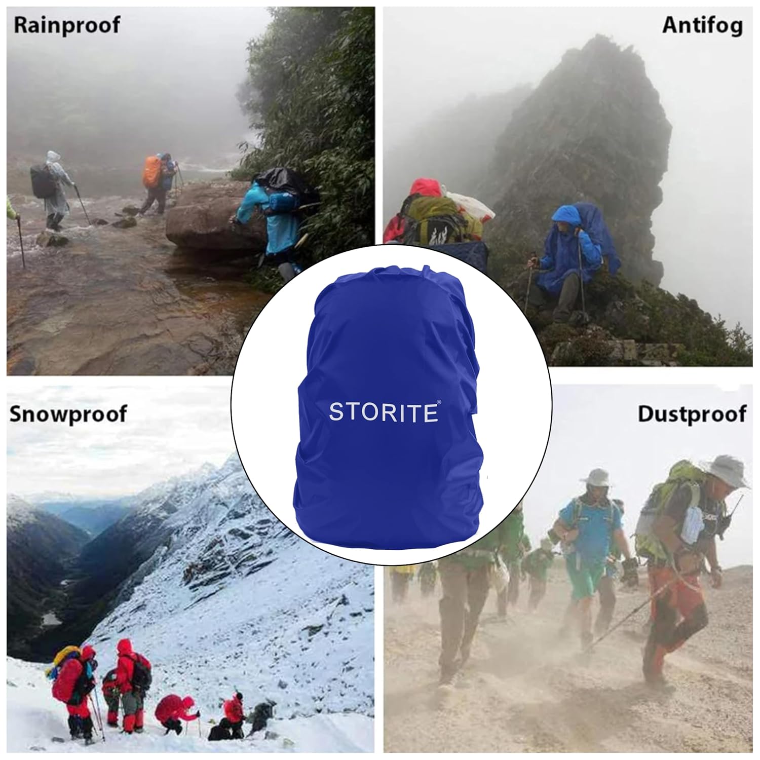 Storite Dust & Rain Cover For Standard Backpack With Pouch, Waterproof Dustproof Rain Cover Bag Elastic Adjustable For School, College,Office, Trekking Bags (30L-35L,Blue)