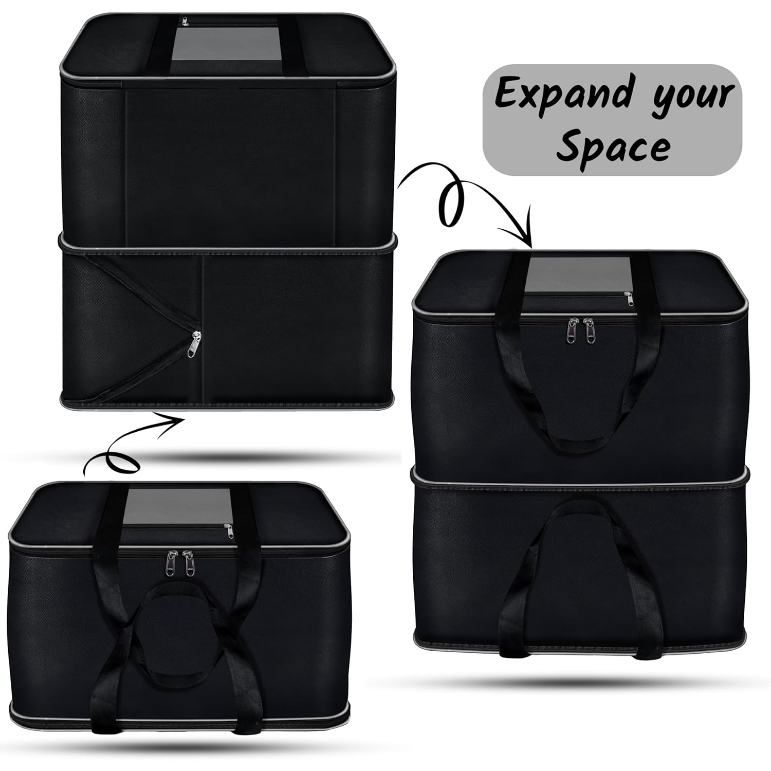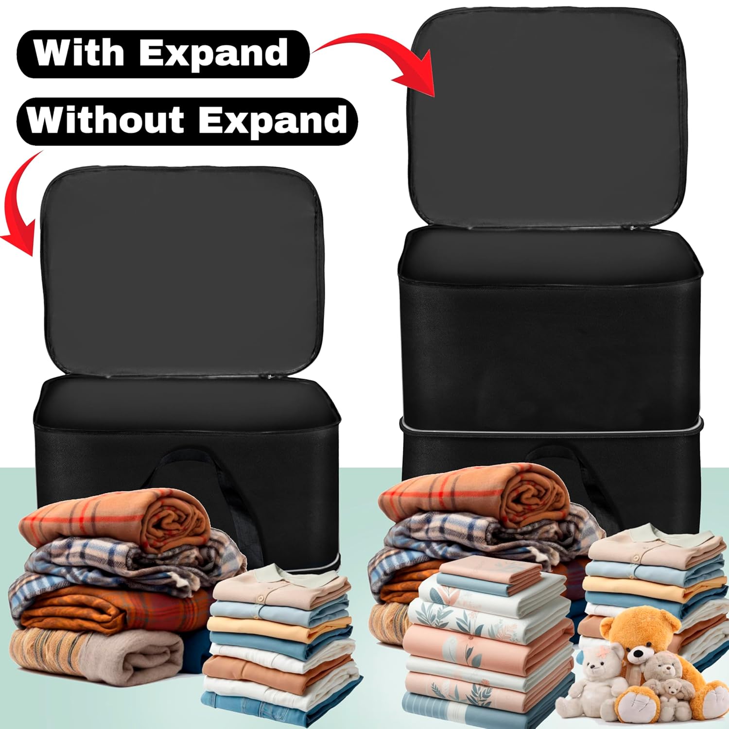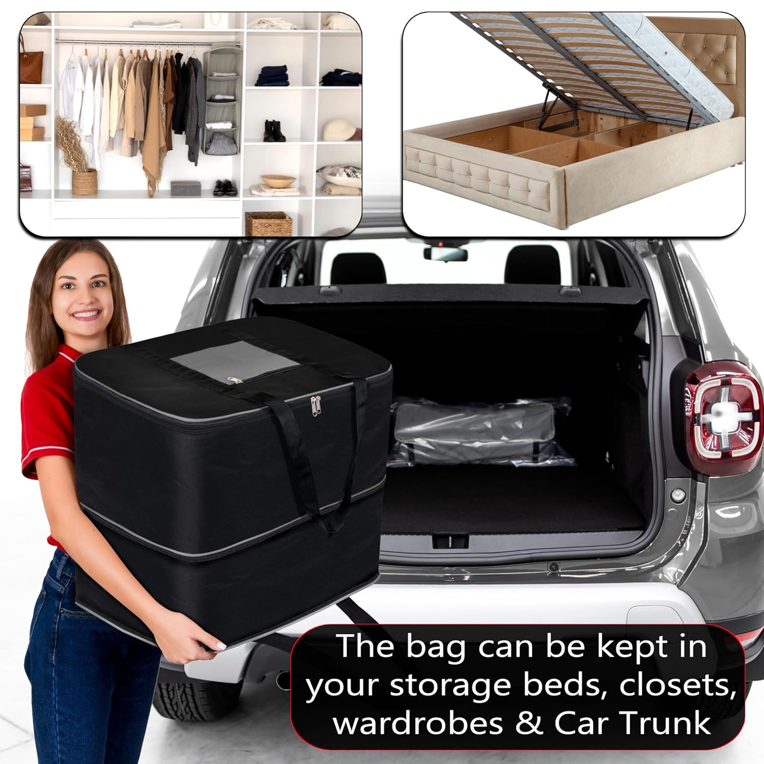 Storite Expandable Moisture Proof Nylon Large Size Underbed Storage Bag For Clothes (57 x 49 x 51 cm) - Grey Black,Rectangular