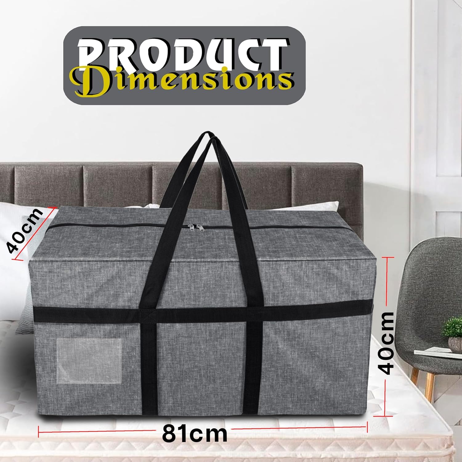 Storite Extra Large 128 L Fabric Moisture Proof Multipurpose Heavy Duty Storage Bag for Toys/Stationery/Blankets/Clothes/Moving Bags With Strong Reinforced Handles Rectangular (Grey,81x40x40 cm)