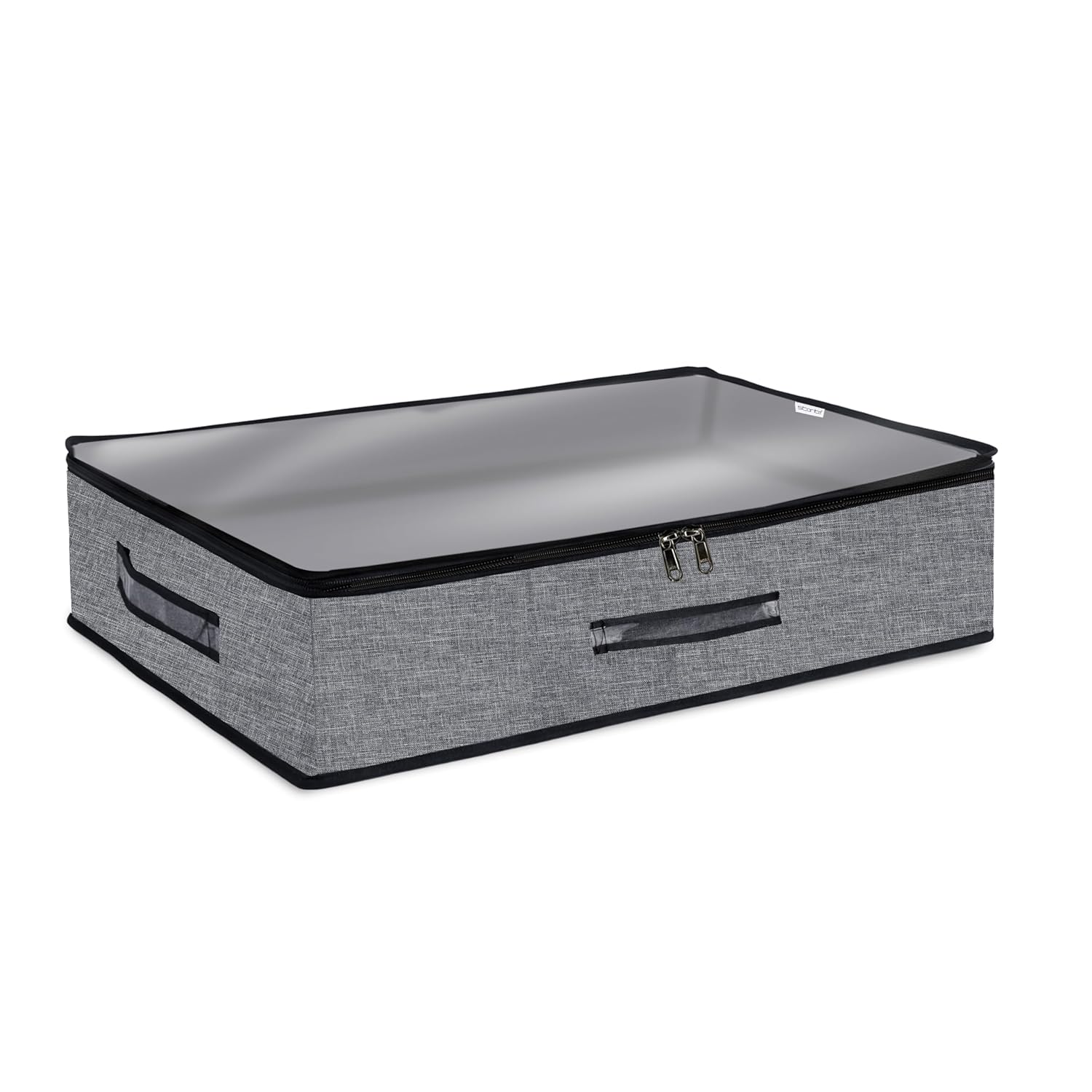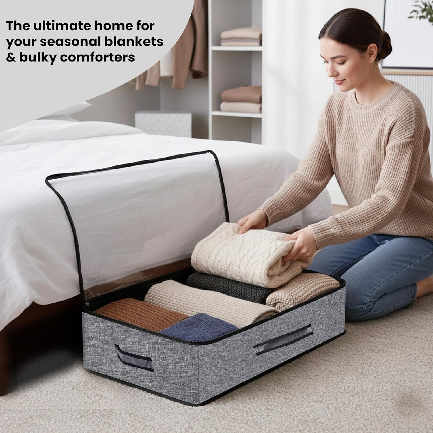Storite Foldable Underbed Bag - Blankets Clothes Comforters Storage Bag Breathable Zippered Organizer for Bedroom with Clear Window and Handles