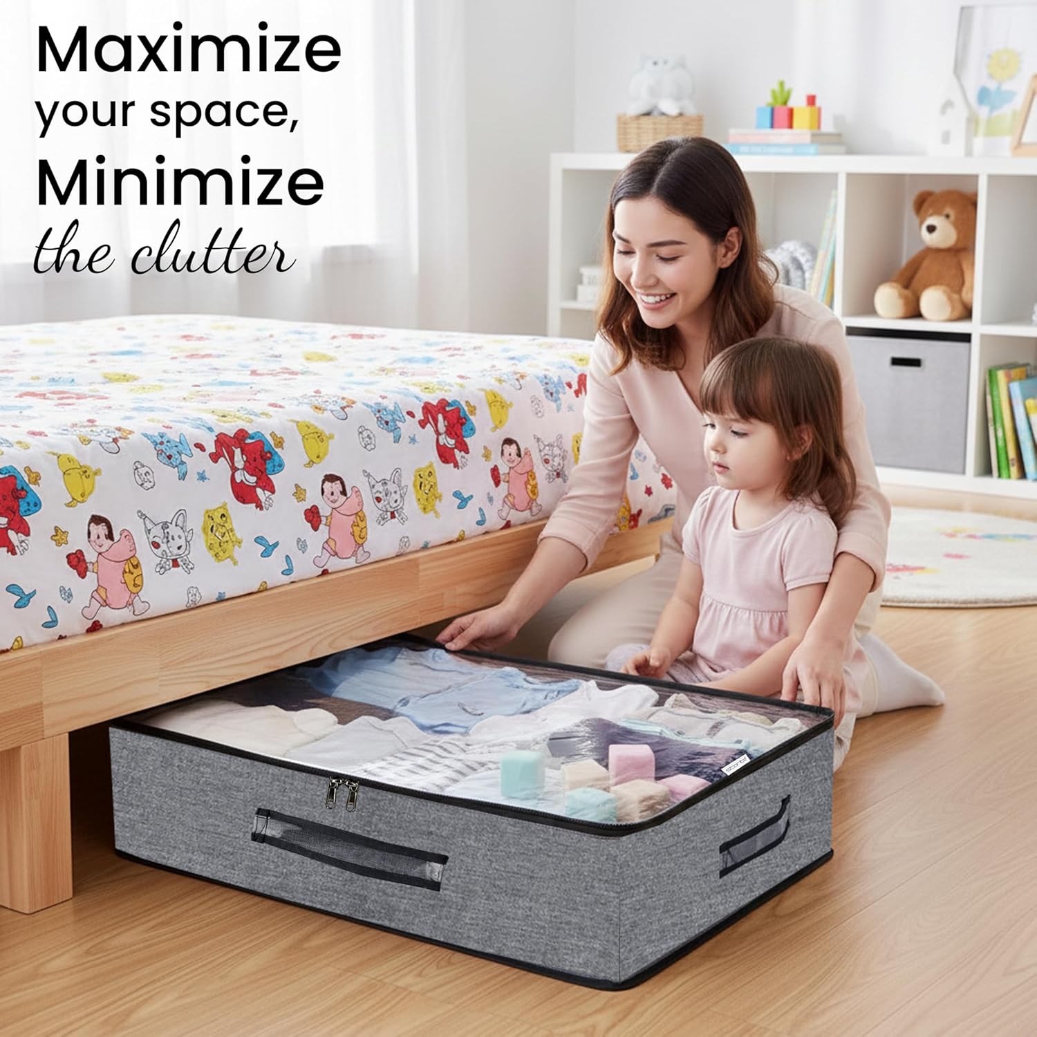 MULTIPURPOSE STORAGE CHOICE - This underbed storage bag fits perfectly under your bed. And ideal for storing clothes, comforters, blankets, off season duvets, beddings, pillows, garments, sweaters, and so on. Keep your closet tidy and clean.