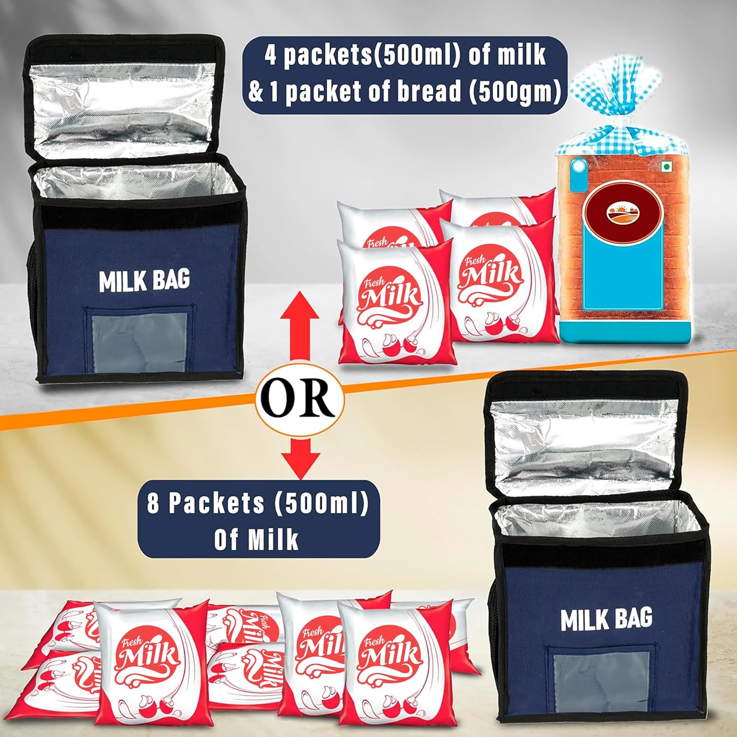 - KEEPS YOUR MILK FRESH : You can keep a milk inside our milk bag, you can also keep a bottle of milk and We have given the option of special Pocket for newspaper ensuring your milk stays fresh and cool for an extended period. You can either store 1 packet of bread and 2 packets of 500 ml milk, or 8 packets of 500 ml milk bags.