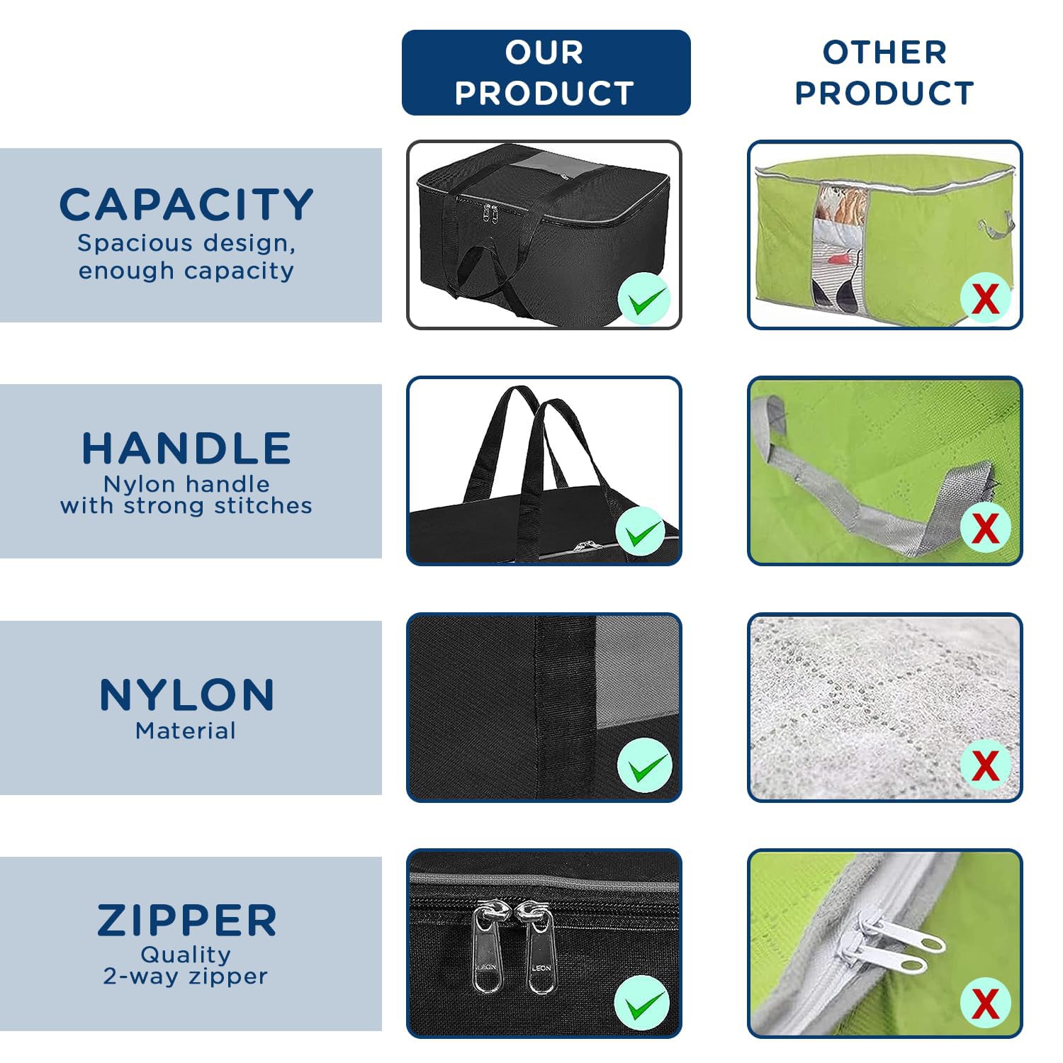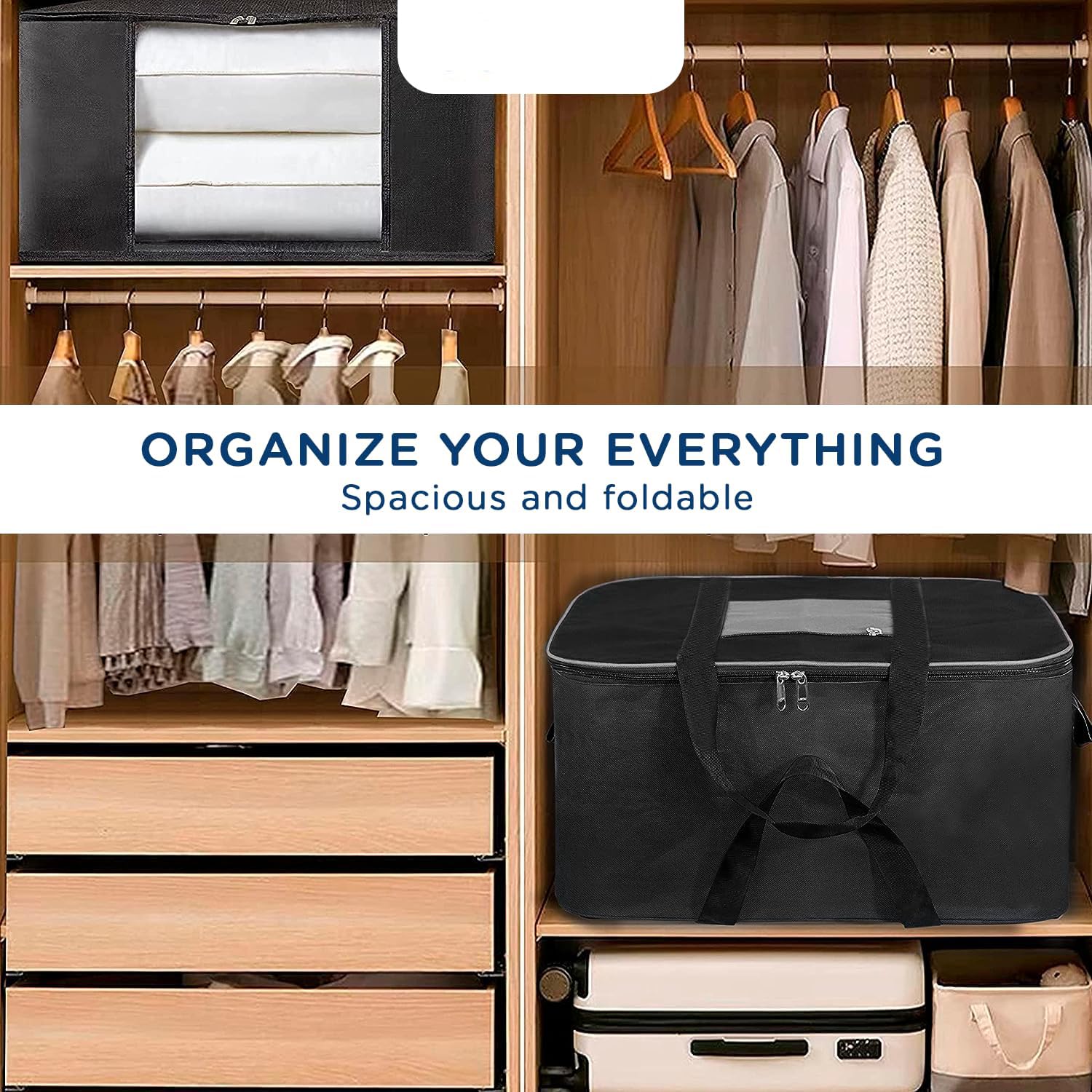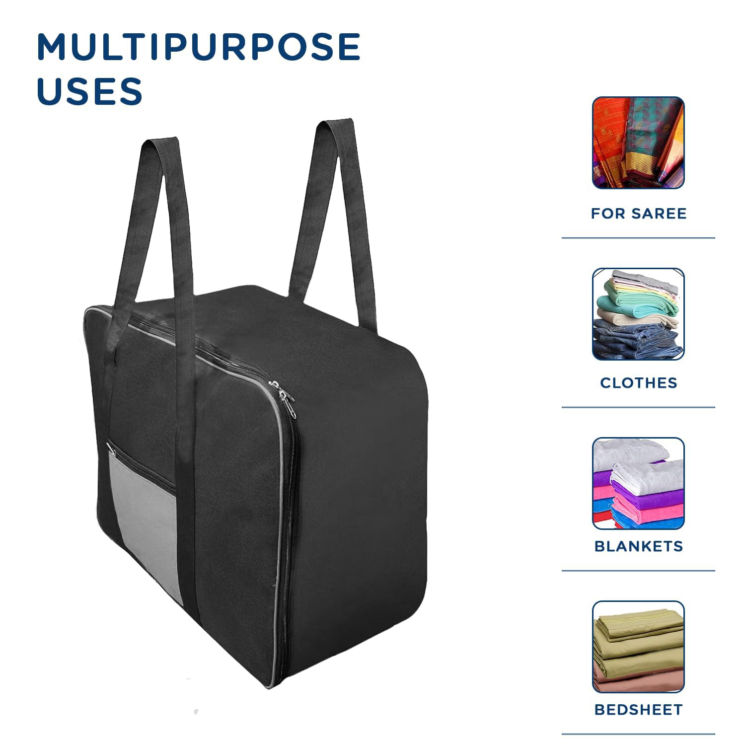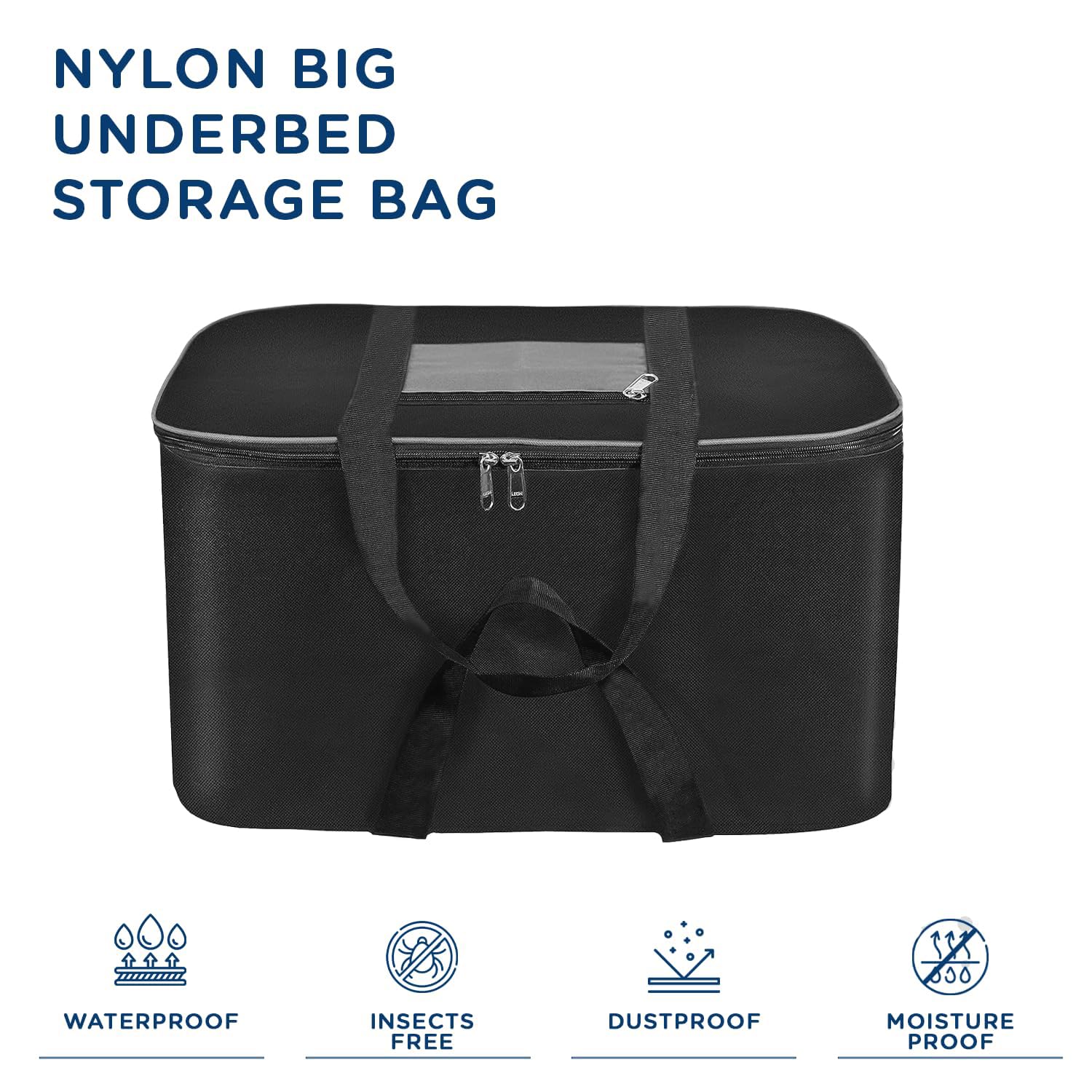 Storite Moisture Proof Nylon Large Size Underbed Storage Bag For Clothes (54 x 46 x 28 cm) - Black, Rectangular