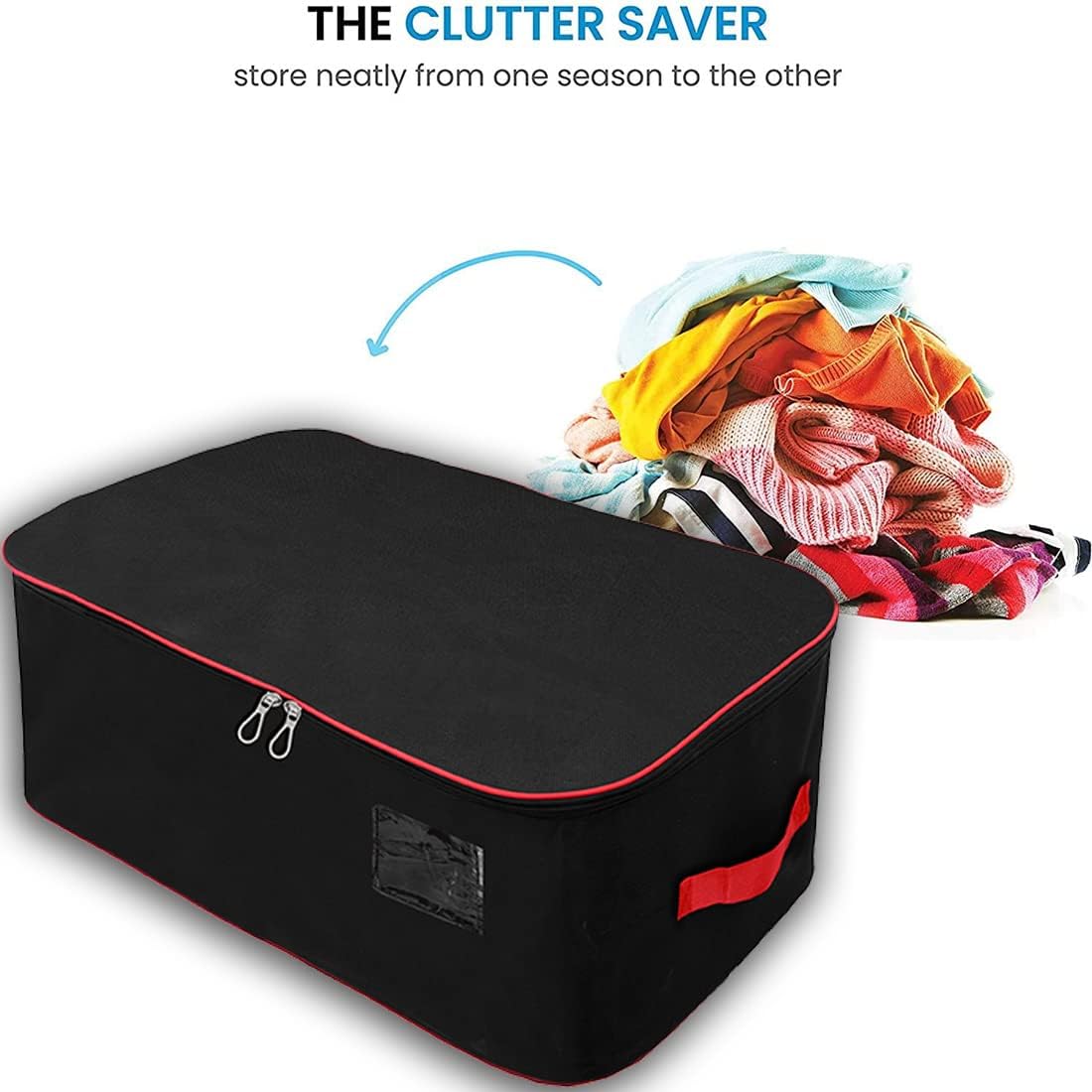 Storite Nylon Extra Large Size 129 L Multipurpose Heavy Duty Moisture Proof Storage Bag for Clothes/Toys/Stationery/Blankets/Paper Rectangular(Red-Black, 78x46x36 cm)