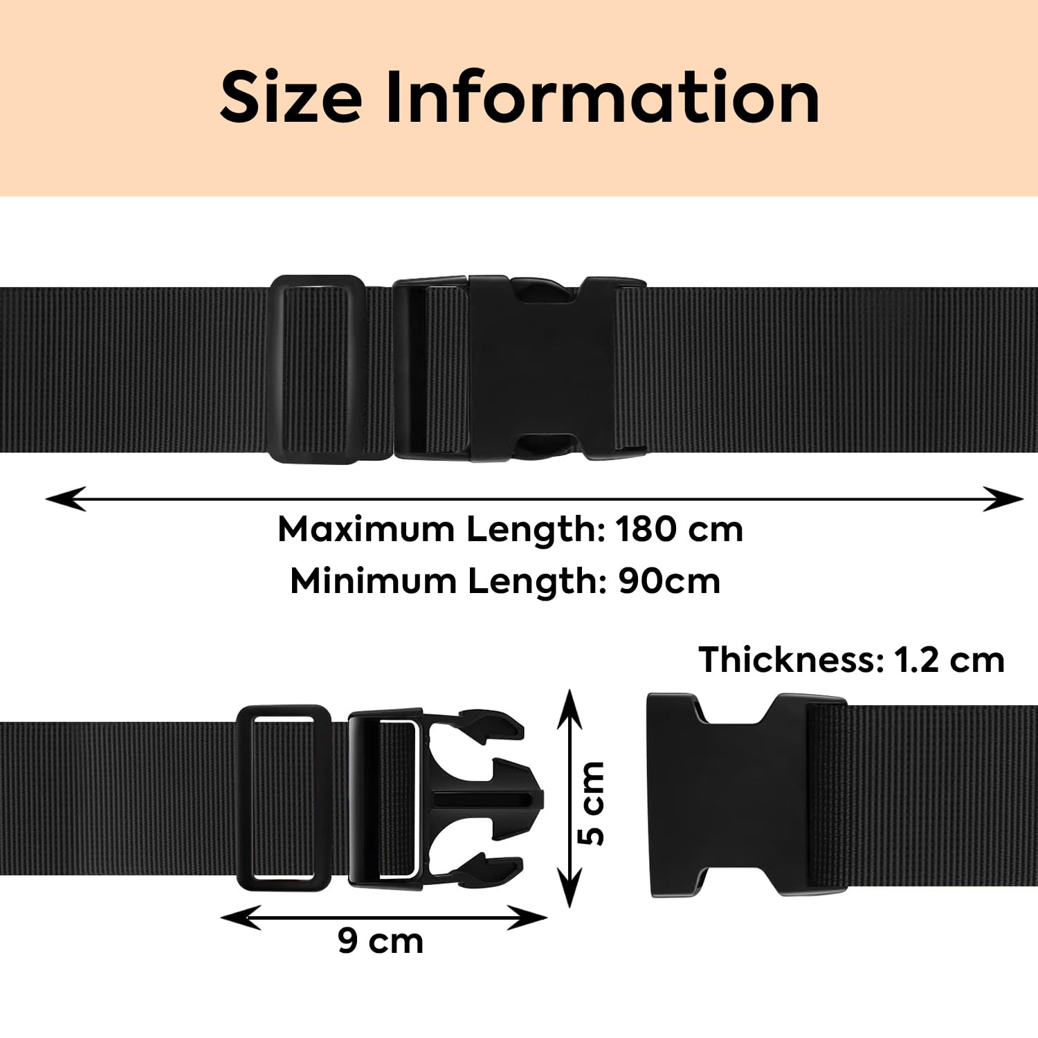 - Versatile Luggage Straps: This set includes 2 luggage straps, each 2 inches wide and 1.8 metres long, suitable for securing luggage bags.