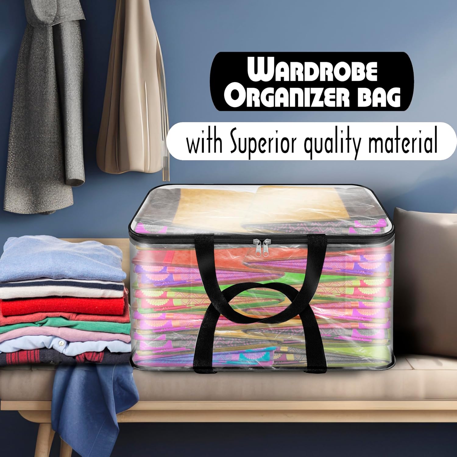 Storite Pack Of 2 Transparent PVC Clothes Storage Bags/Saree Covers with Zip for Storage Specially Design for Woman Dresses, Sarees, Lehengas | Wardrobe Organizer (41 x 31 x 23 cm)