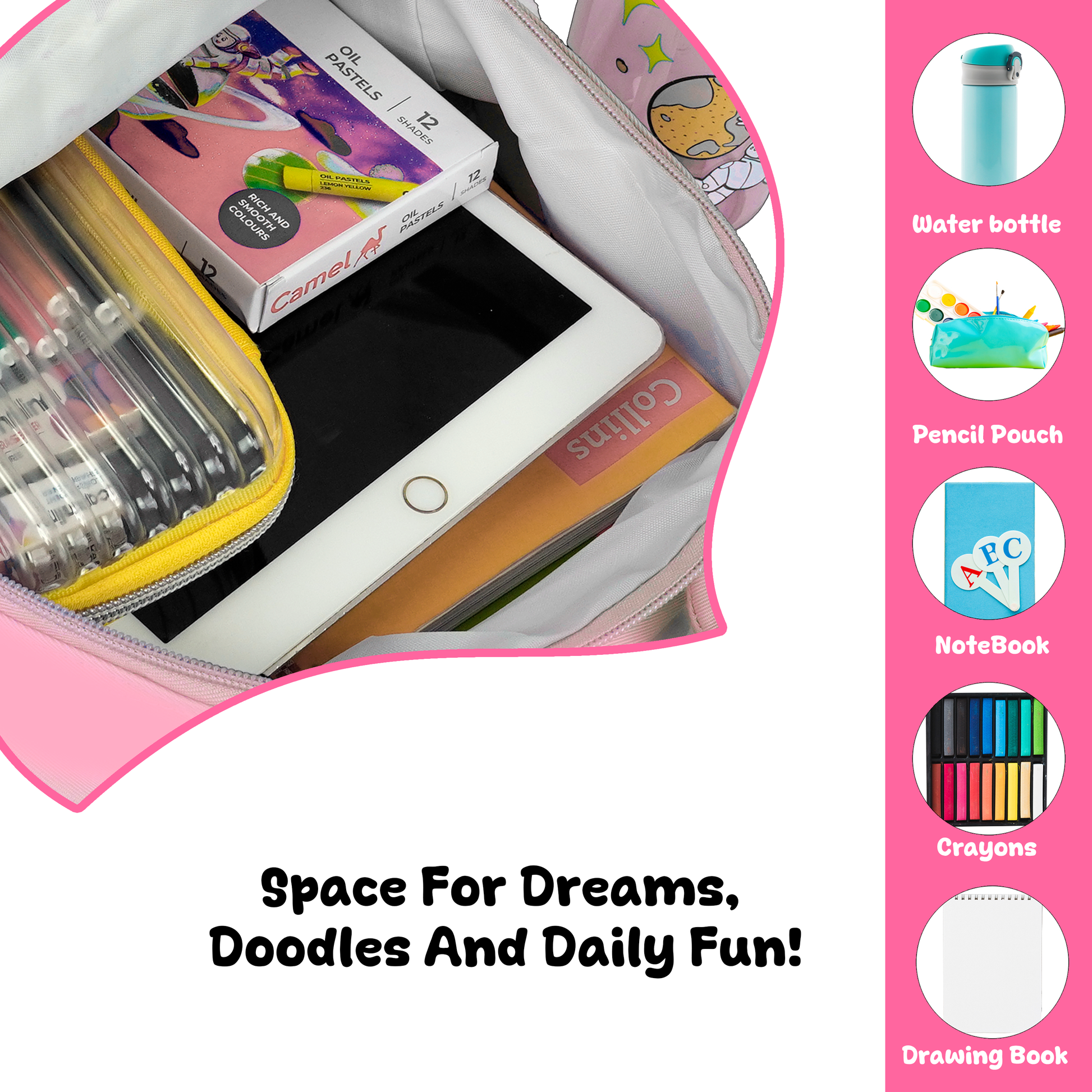 - Main compartment with ample room for books, lunch box, and other kindergarten necessities