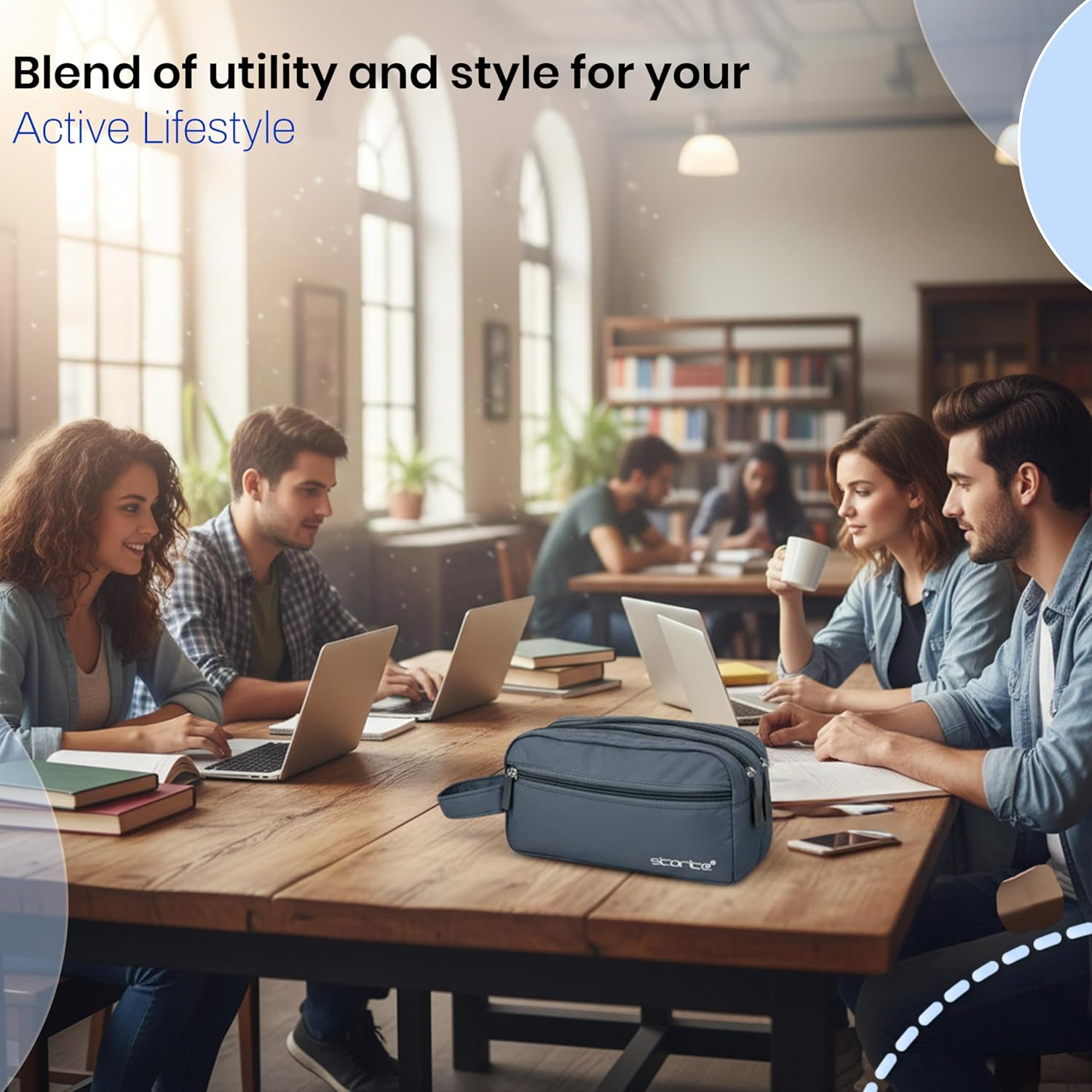 Storite Polyester Multi-Pocket Toiletry Bag for Men & Women, Travel Pouch for Toiletries Shaving Kit & Cosmetics, Water Resistance Pouch, Organizer Travel Pouch for Make Up (1Pk-Blue)