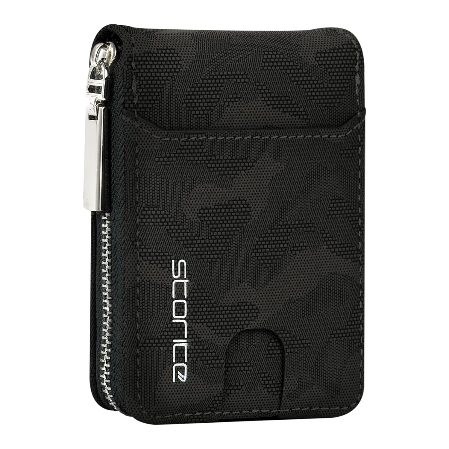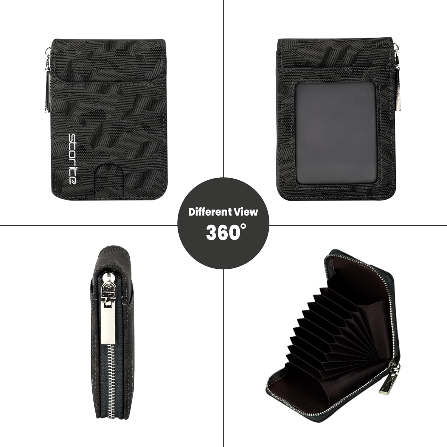 Storite PU Leather 9 Slot Vertical Credit Debit Card Holder Money Wallet Zipper Coin Purse for Men Women - (11.5 Cm X 8 Cm X 2Cm -Black)