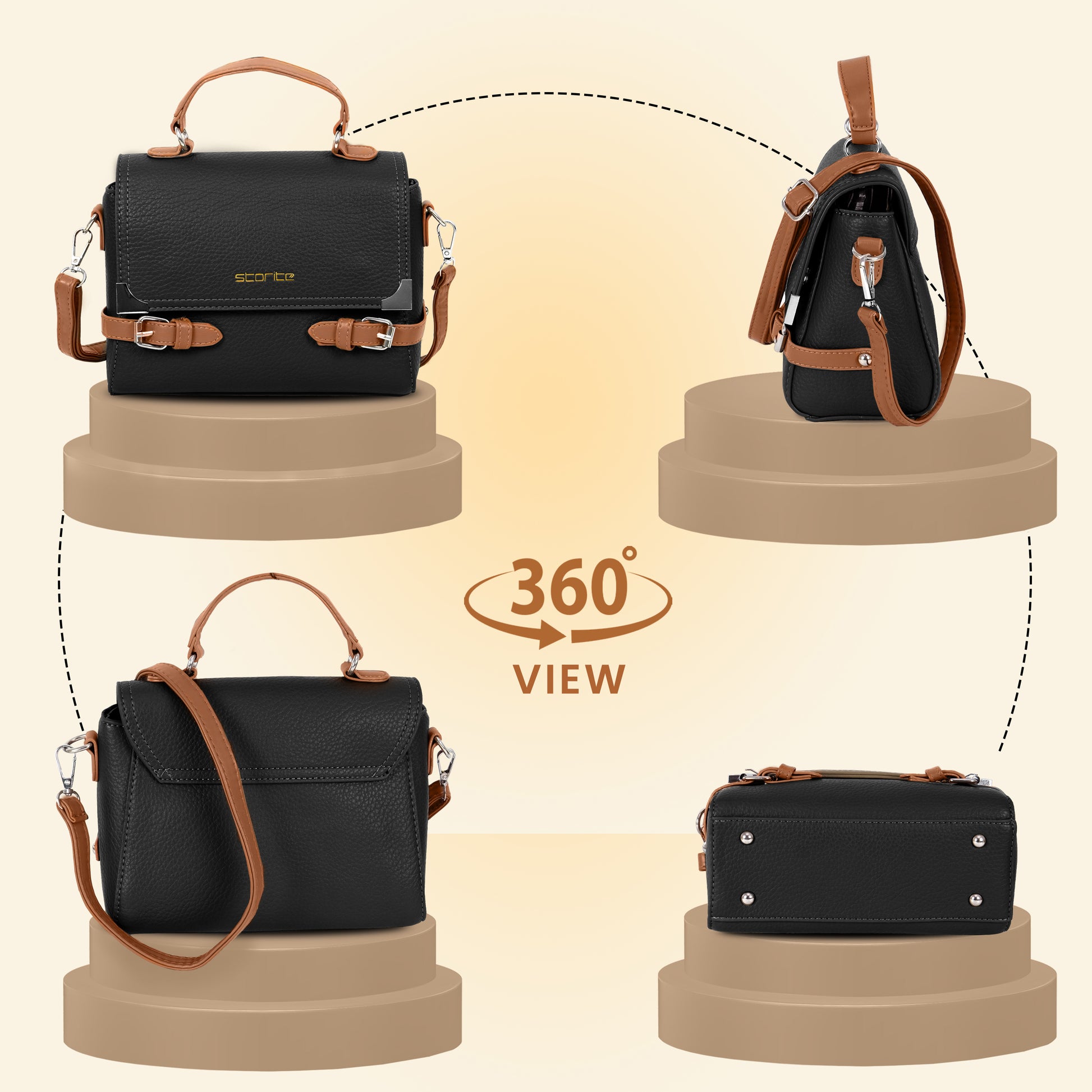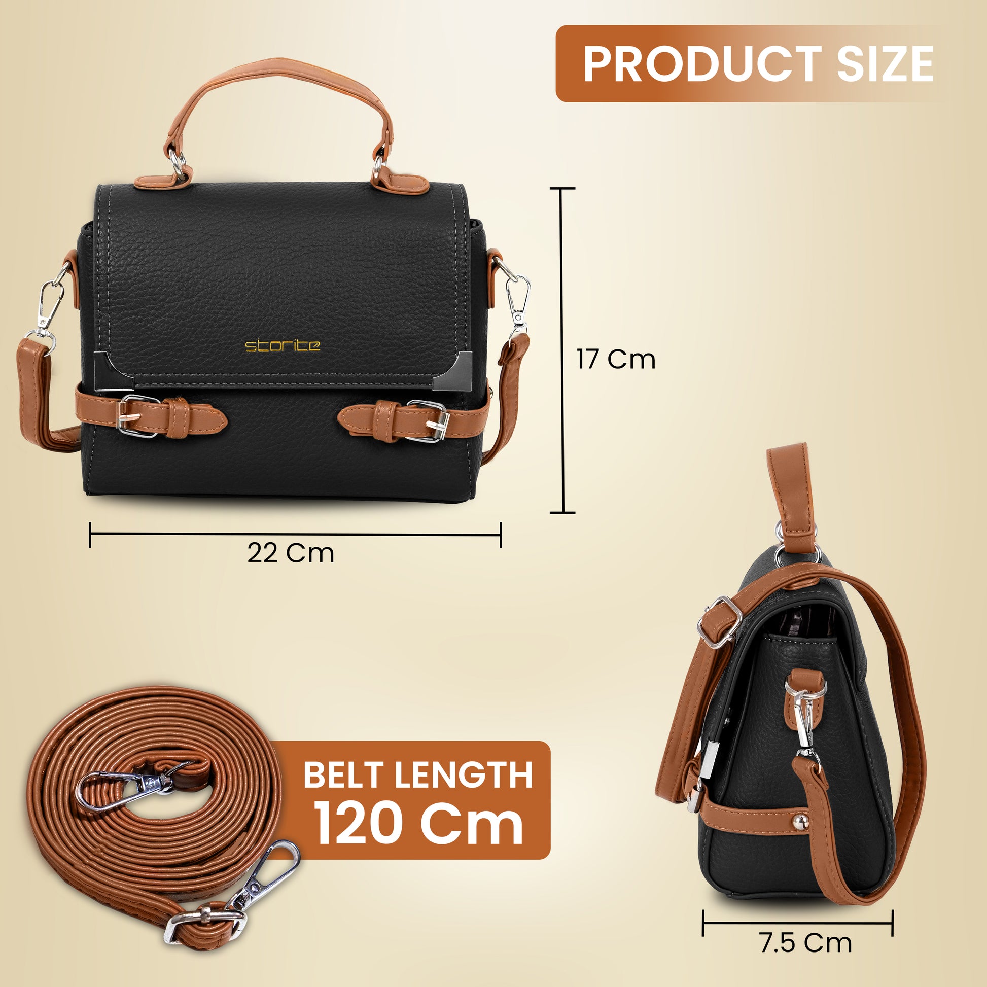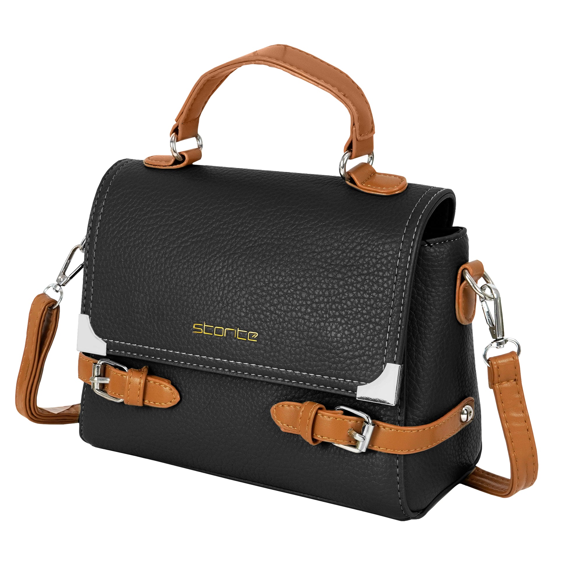 Storite PU Leather Hand Bag | Shoulder Bags for Women with Strap (Black)
