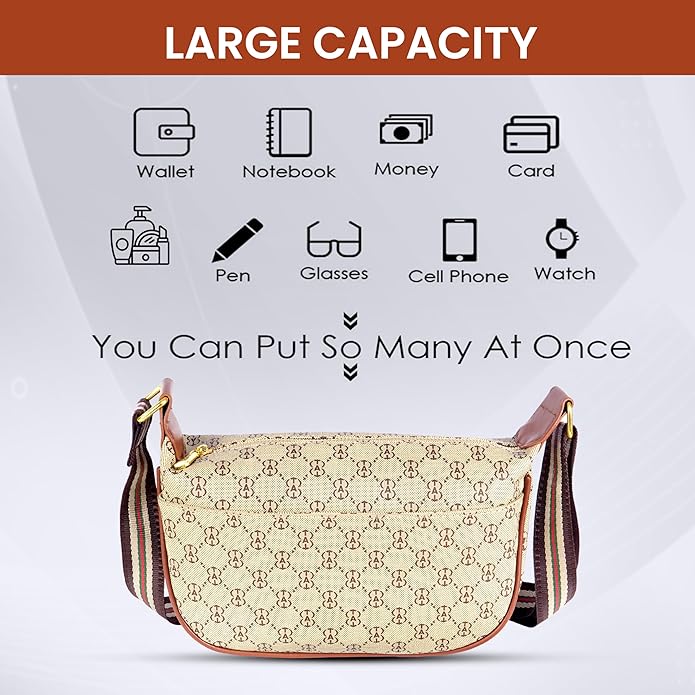 - Stylish Design: Elevate your fashion handbag featuring a modern and versatile design that complements any outfit.This fashionable sling bag features a pouch to keep your change organized. Includes multiple card slots and a zippered main compartment for secure storage of essentials.