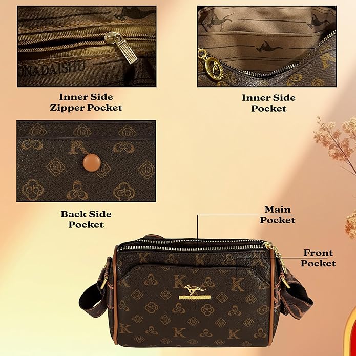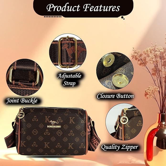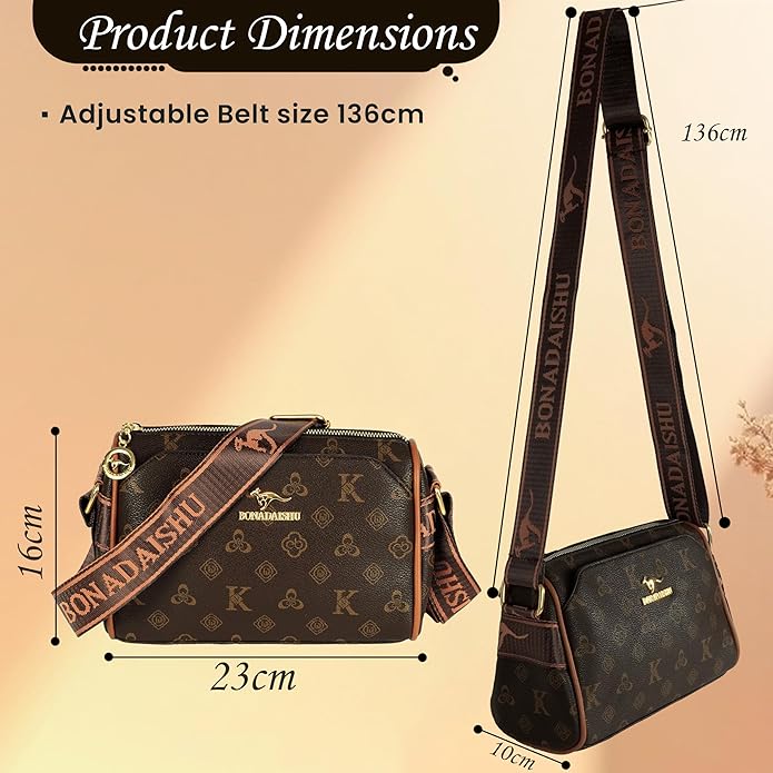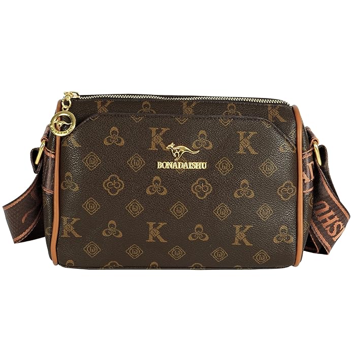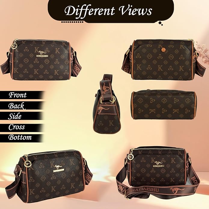 - PREMIUM DESIGN: Elegant crossbody handbag featuring classic monogram pattern, gold-tone hardware, and durable PU leather construction for lasting style