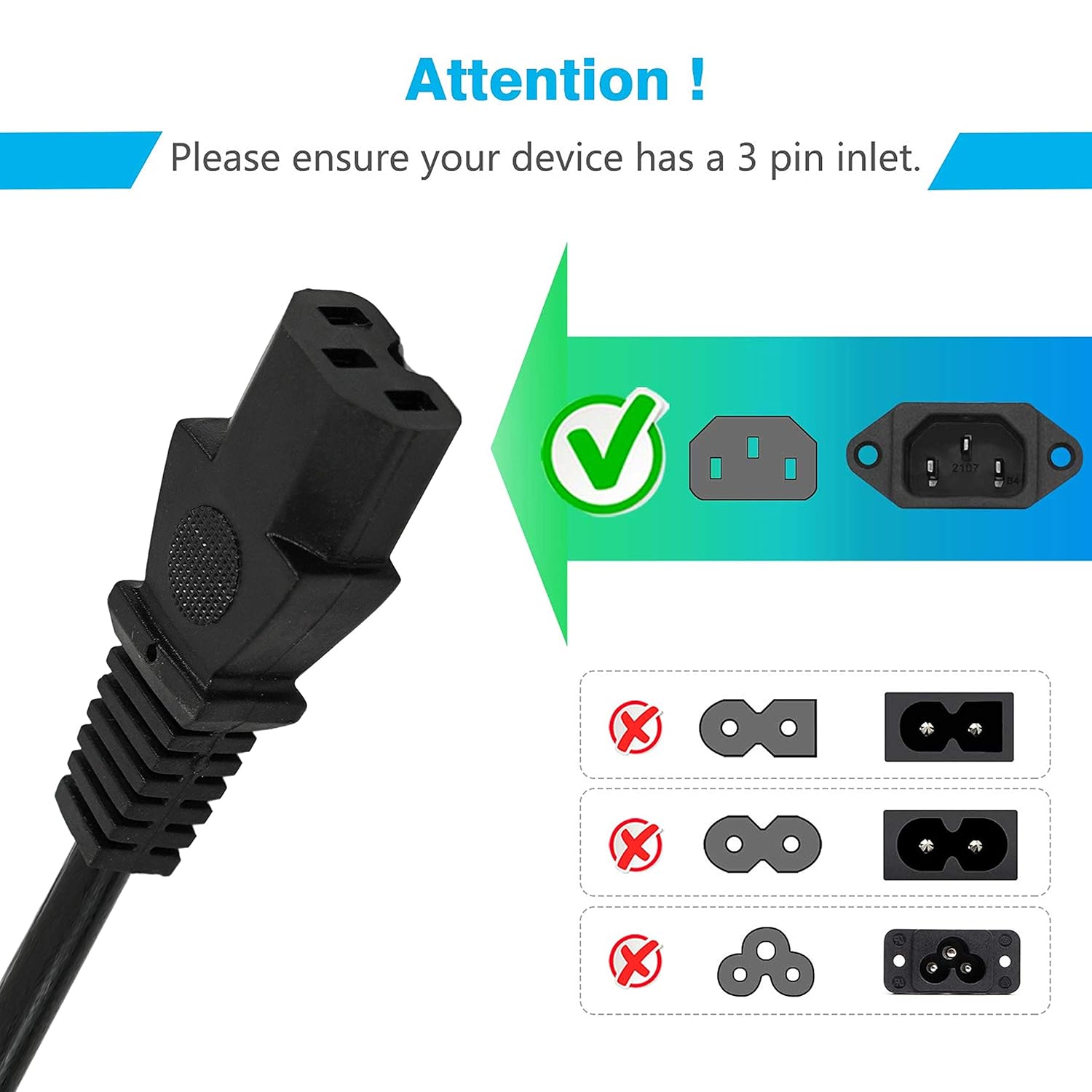 - ✔️Power cord for most models of a desktop PC computer, scanner, printer, LED TV monitor, projector, powered speakers, laser printer, gaming console and more that have a removable power cord and use the 3-pin power connector