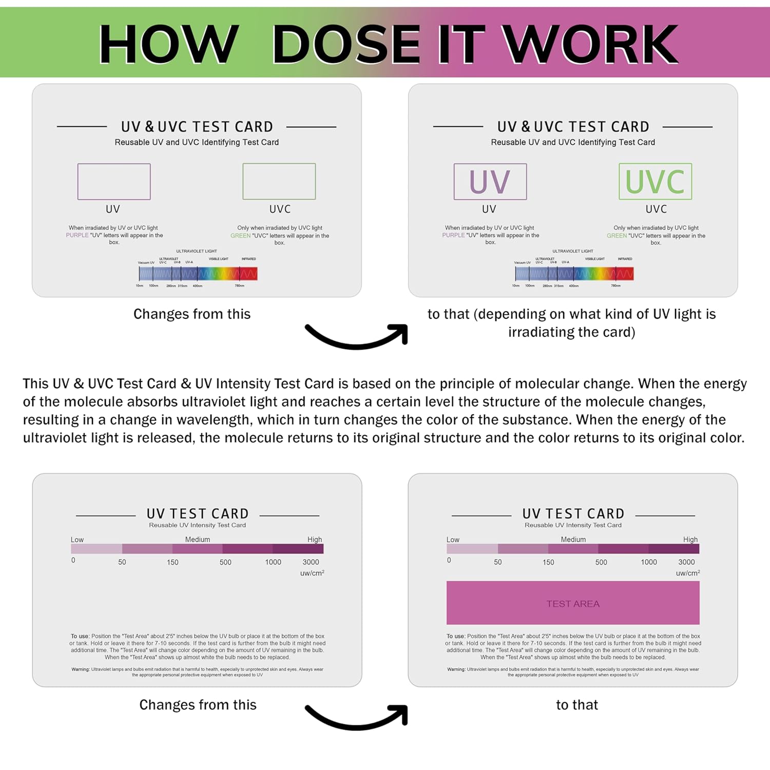 Storite UV & UVC Test Card & UV Intensity Test Card | 3-in-1 UV Test Card | UVA & UVC Light Identifying Card | UV Bulb & LED Intensity Reading Card | UV Dosage Indicator Card | UVB Tester