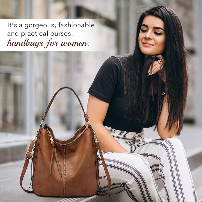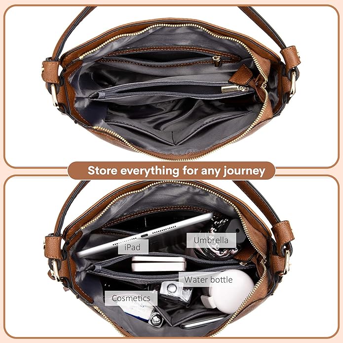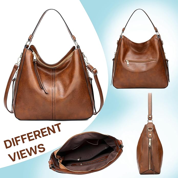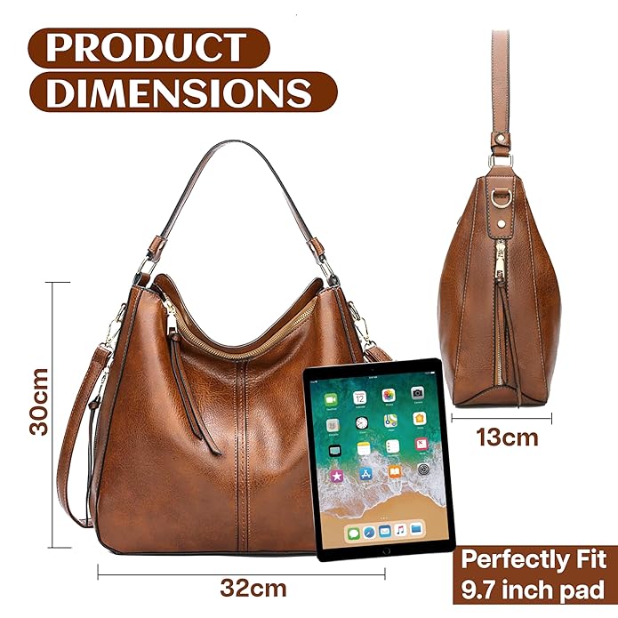 Storite Women's Faux Leather Shoulder Handbags Hobo Bag BigTote Bag for Office and College with Long Strap–,30x13x32cm